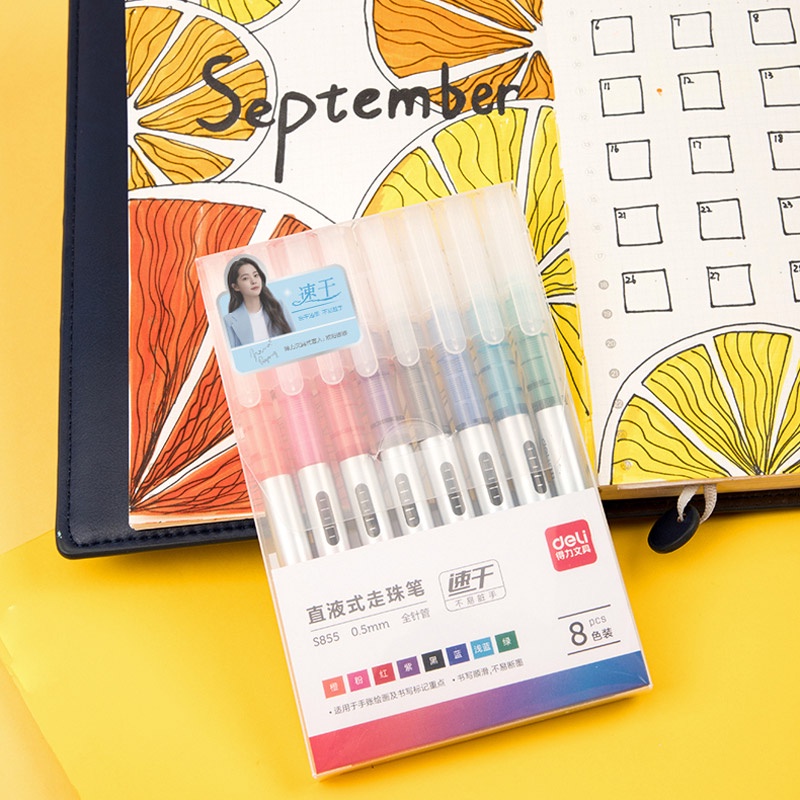 Deli 8 PCS/Box Straight Liquid Gel Pen Set Different Color 0.5mm Roller Ballpoint Pens