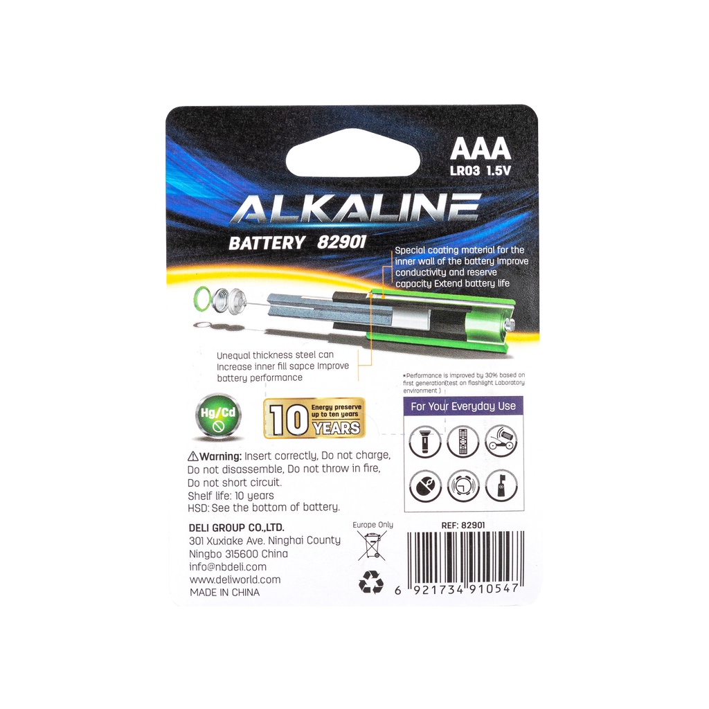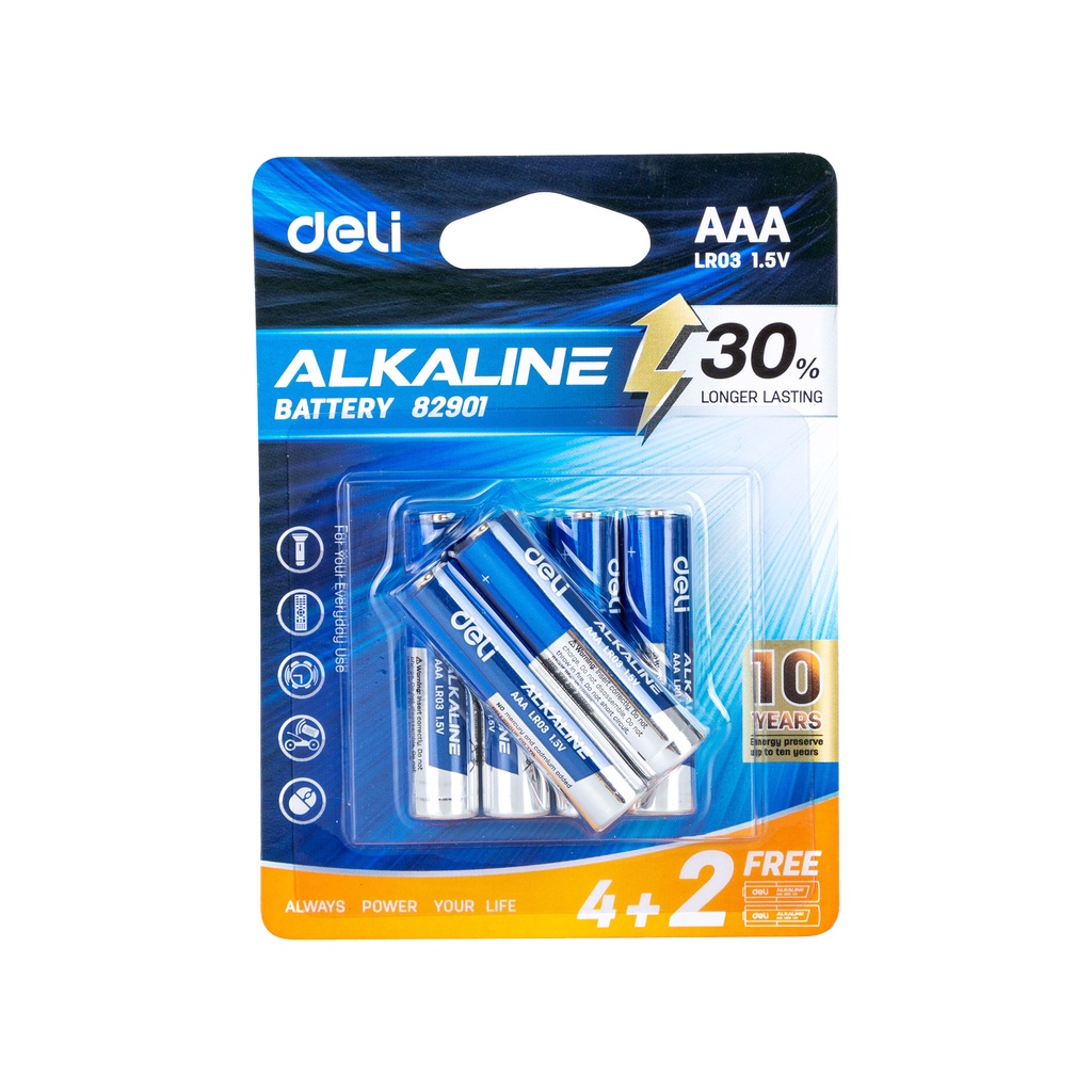 Deli 82901 Alkaline Battery AAA LR03 4+2pcs 1PACK [7982901]