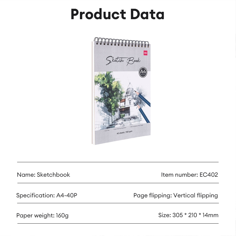 Deli A4 Art Paper Sketchbook 160g EC402/EC403