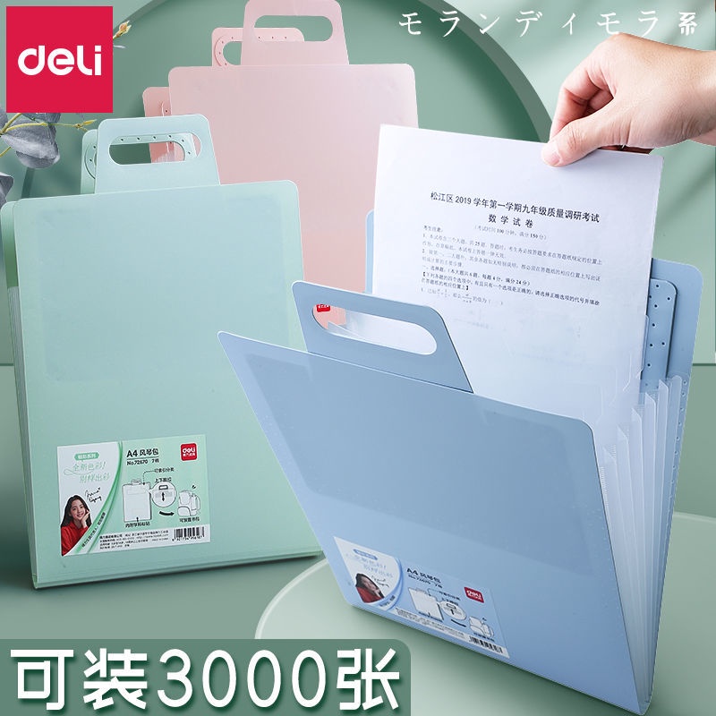 Deli A4 Vertical Portable Test Paper Bag 13-Layer Student Use Multi-Layer Large-Capacity Data Storage Book Organizing Classification Folder
