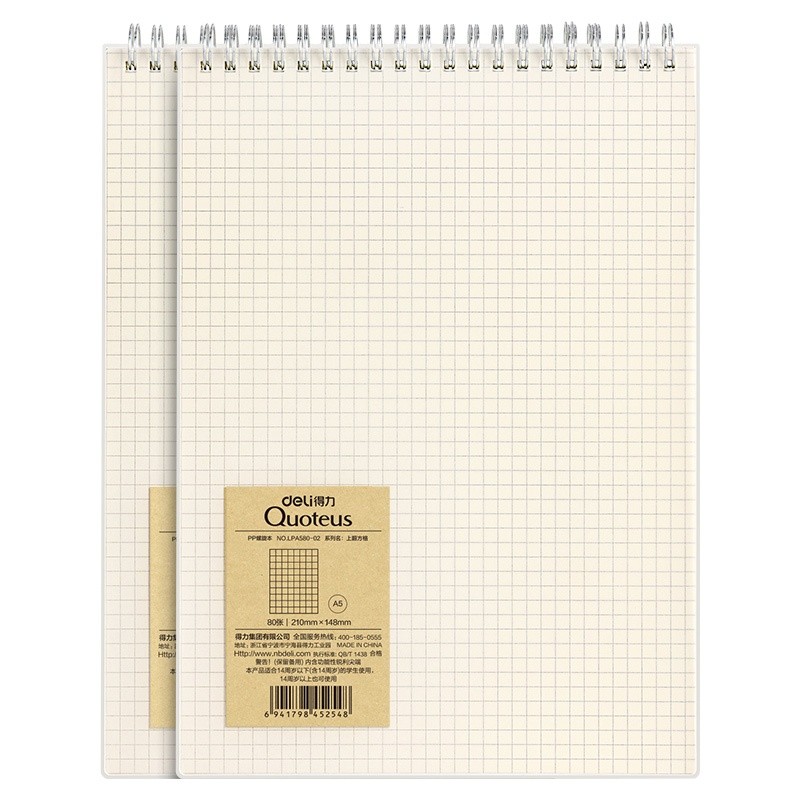 Deli A5/B5/A4 Binder Notebook 80 Sheets Line/Grid Spiral Notebooks