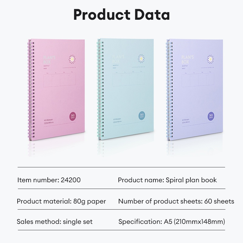 Deli A5 Notebook 60 Pages 365 Days Plan Record Notebook 24200