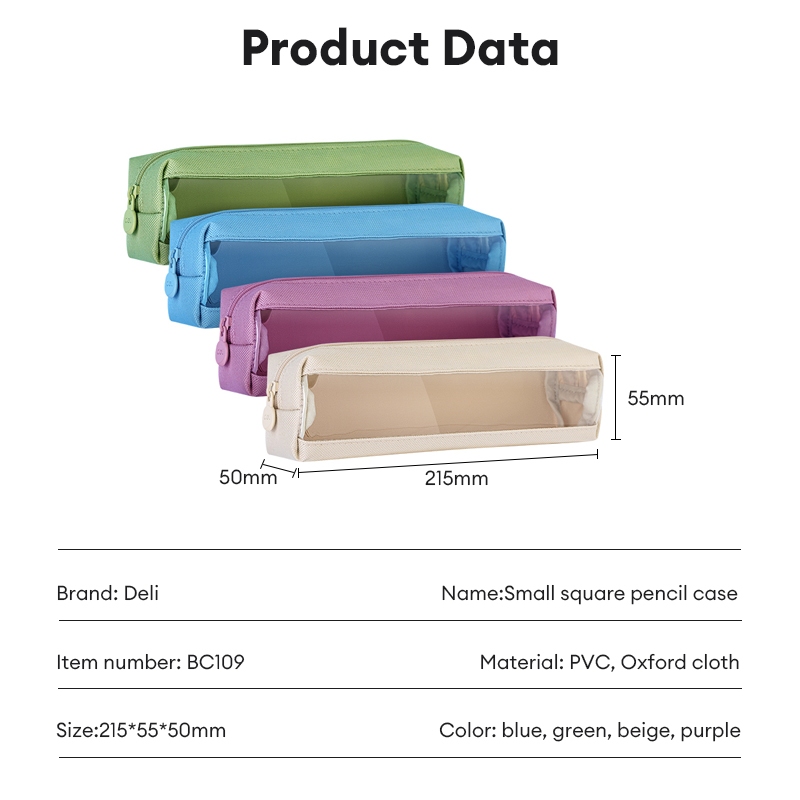 Deli BC109 Window Small Square Bag Multi-purpose Pencil Case Pen Case