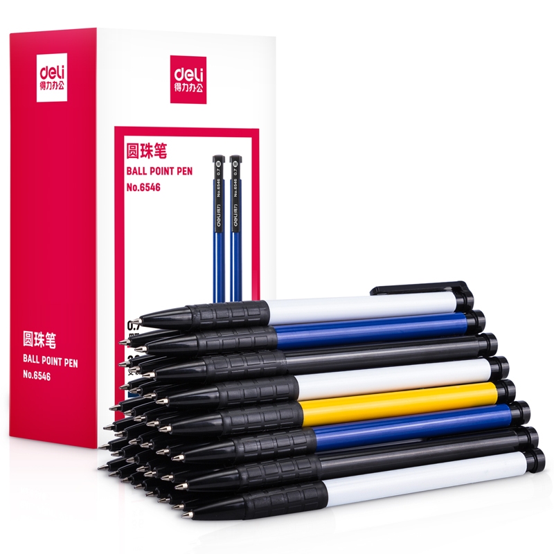 Deli Ballpoint Pen 0.7mm Smooth Writing Ballpen Black/Blue/Red Color for School Office 6546