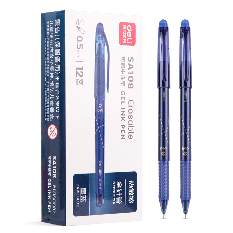 Deli Cap-pulling Erasable Gel Pen 0.5mm Full Needle Tube Blue/Red PenSA108