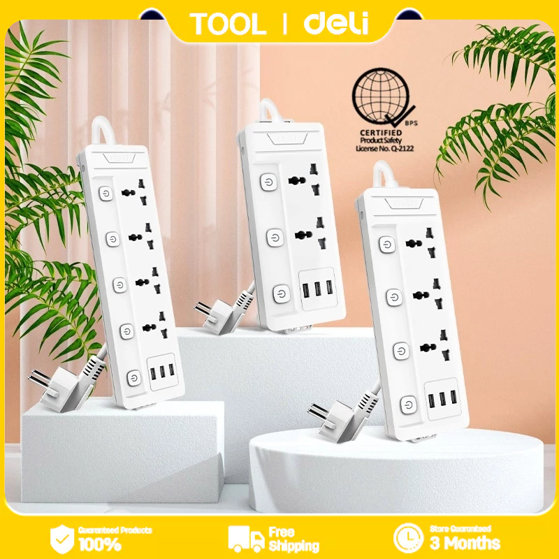 Deli Tool Extension Cord with USB Port Multifunctional Power Strip Power Socket with Switch