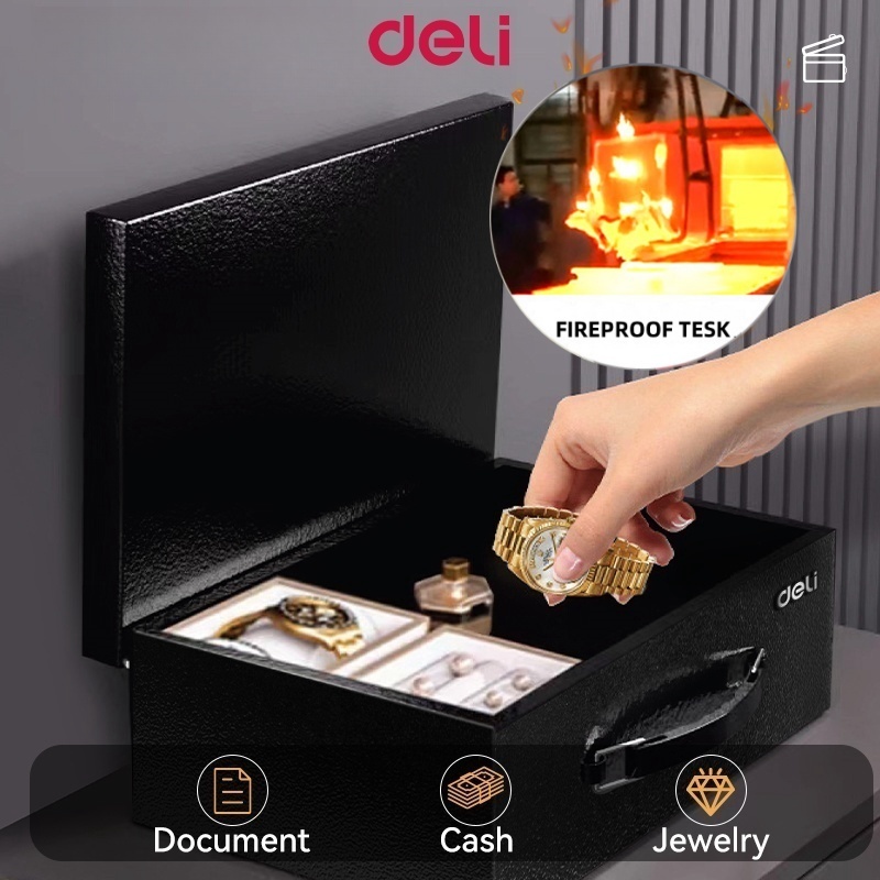 Deli Fireproof Money Box With Lock And Key Safe Deposit Box Mechanical Lock Portable Large Cash Box
