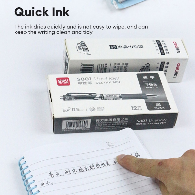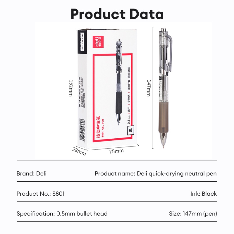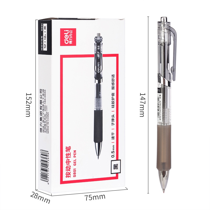 Deli Gel Pen 0.5mm Black Press Gel Pen Sign Pen School Office Supplies S801