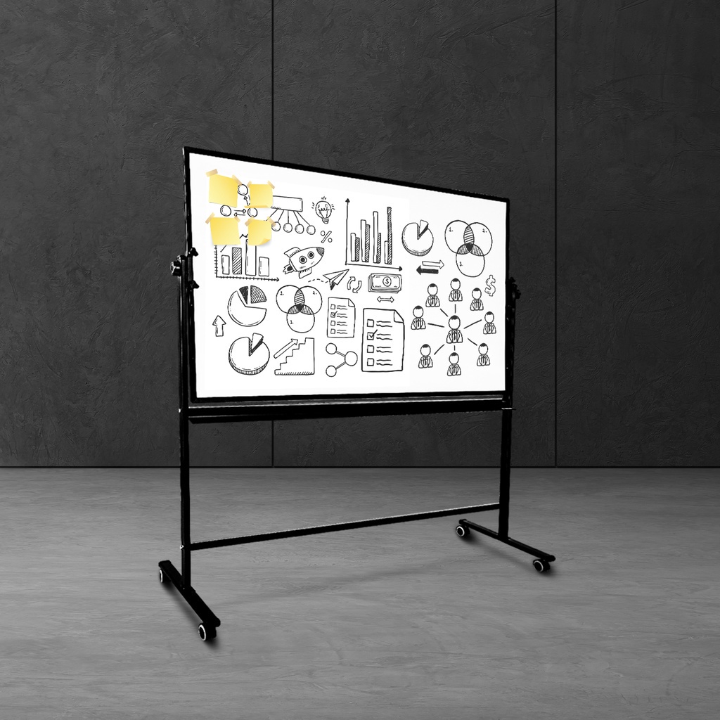 Deli Magnetic White Board With Stand 2 Side Writing Board For Office Meeting Mobile White Board