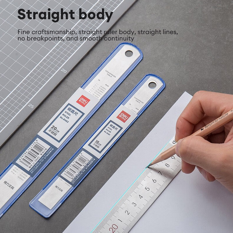 Deli Metal Measure 15cm Steel Ruler Metal Ruler Stainless Steel Measure Ruler 8461
