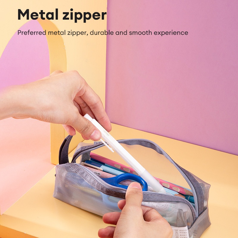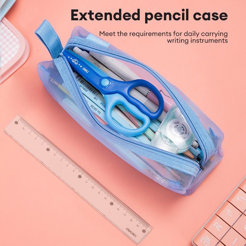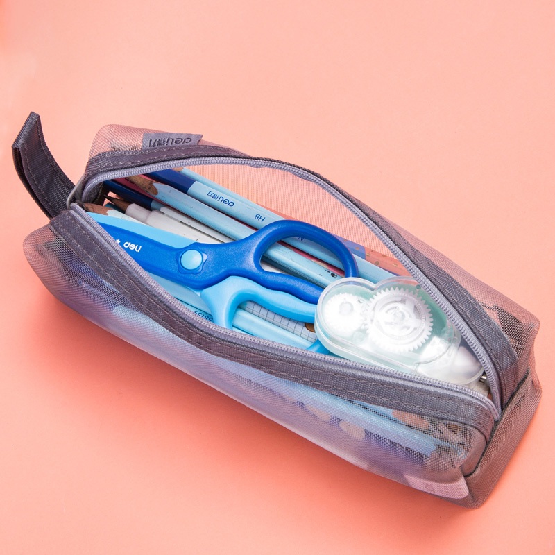Deli Nylon Mesh Pencil Case Simple Fashion Zip Pencil Pouch 66747