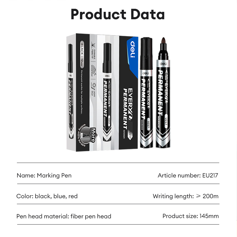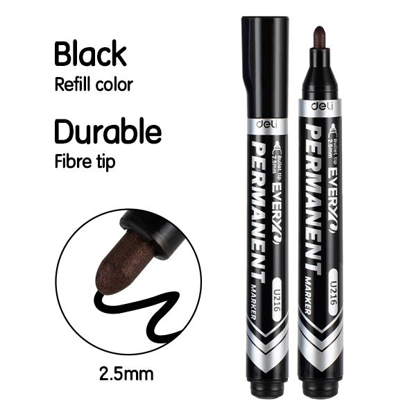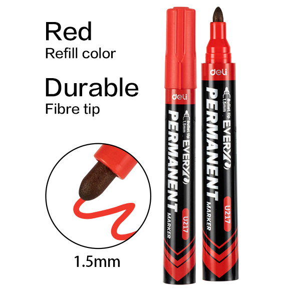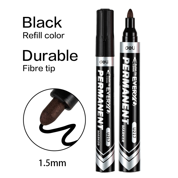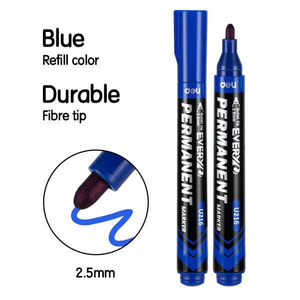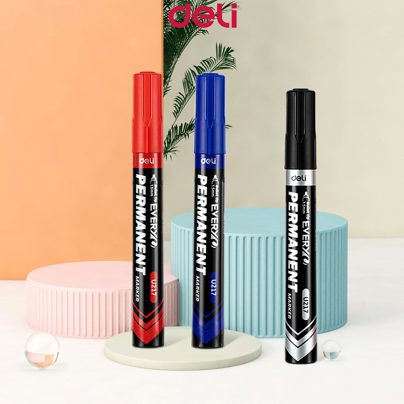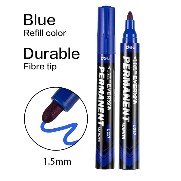 Deli Permanent Marker Pen 1.5mm/2.5mm Waterproof Marker Pen Blue/Red/Black 1Pcs
