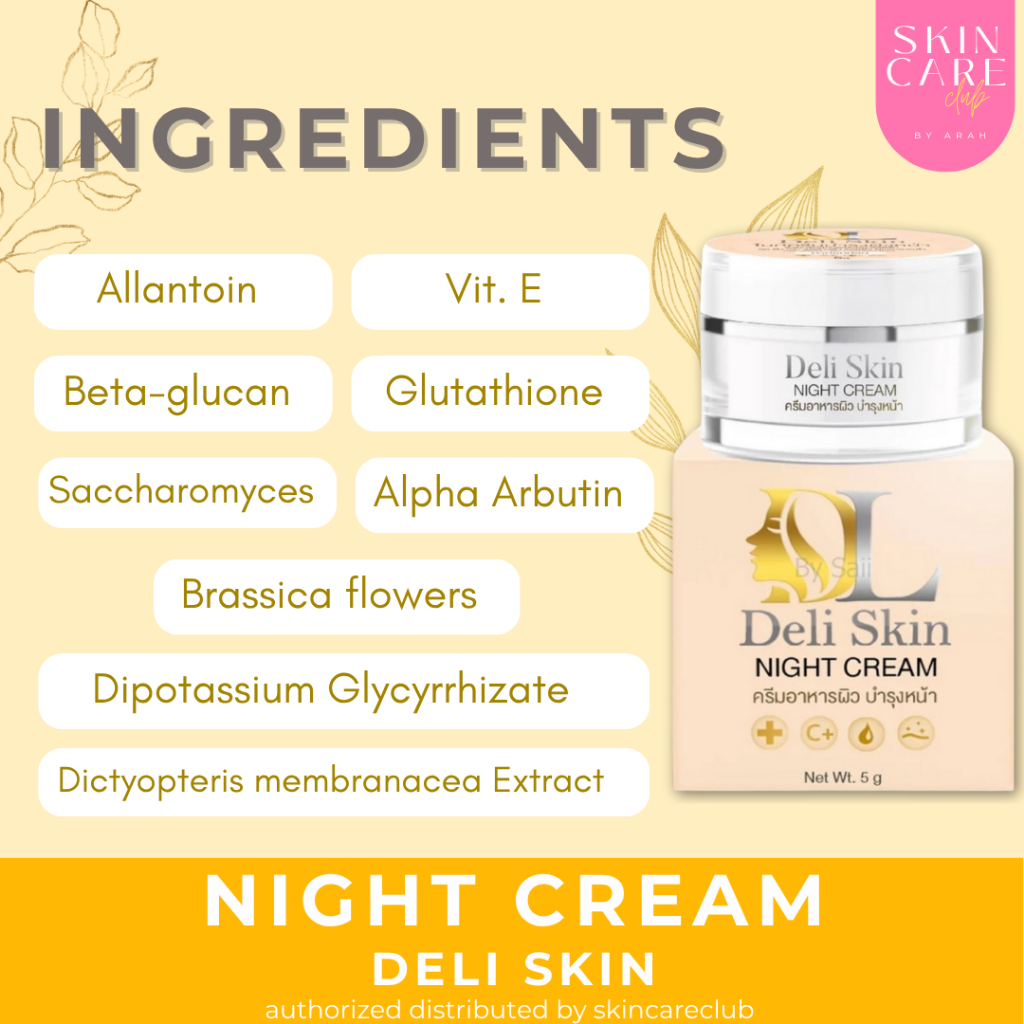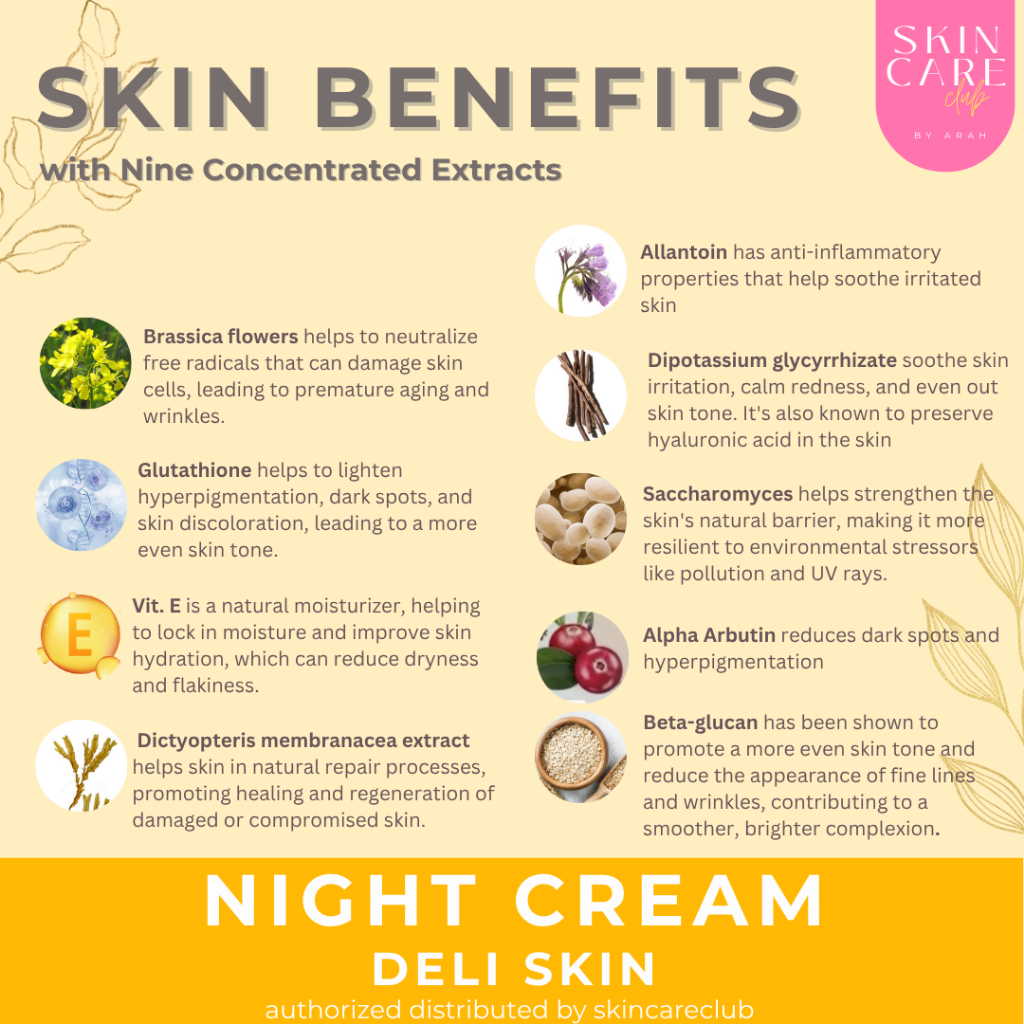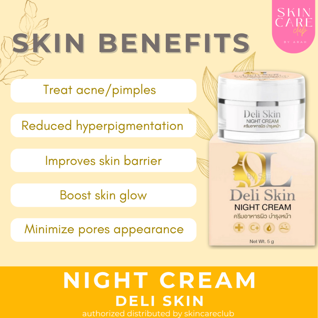 Deli Skin Night Cream for Acne, Melasma, Dull Skin with Nine Active Ingredients | 5g