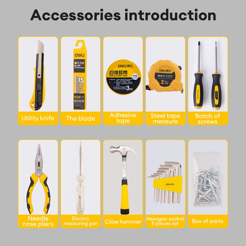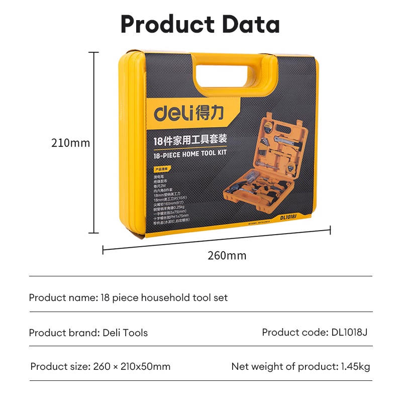 Deli Tools 18Pcs/set Household Tool Box Car Motorcycle Repair Portable Tools Box Kit DL1018J