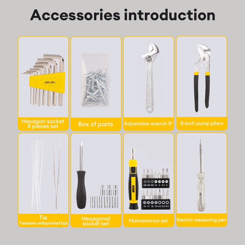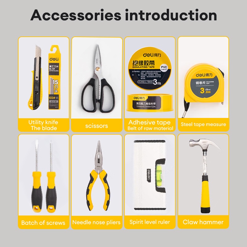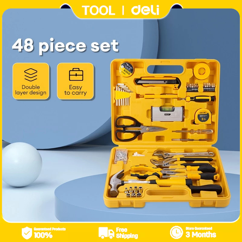 Deli Tools 48Pcs/Set Tool Box Set Household Repairing Tools Set Home Tool DIY Kit DL1048J