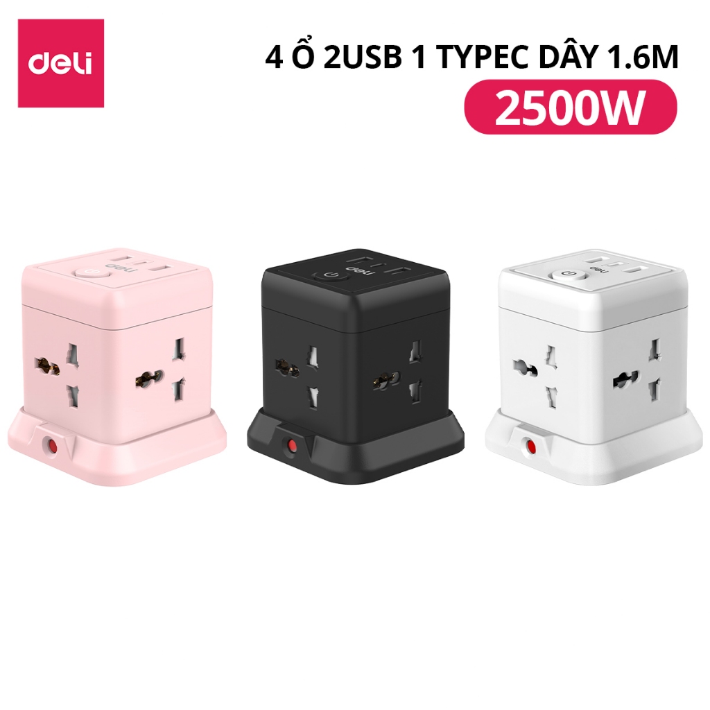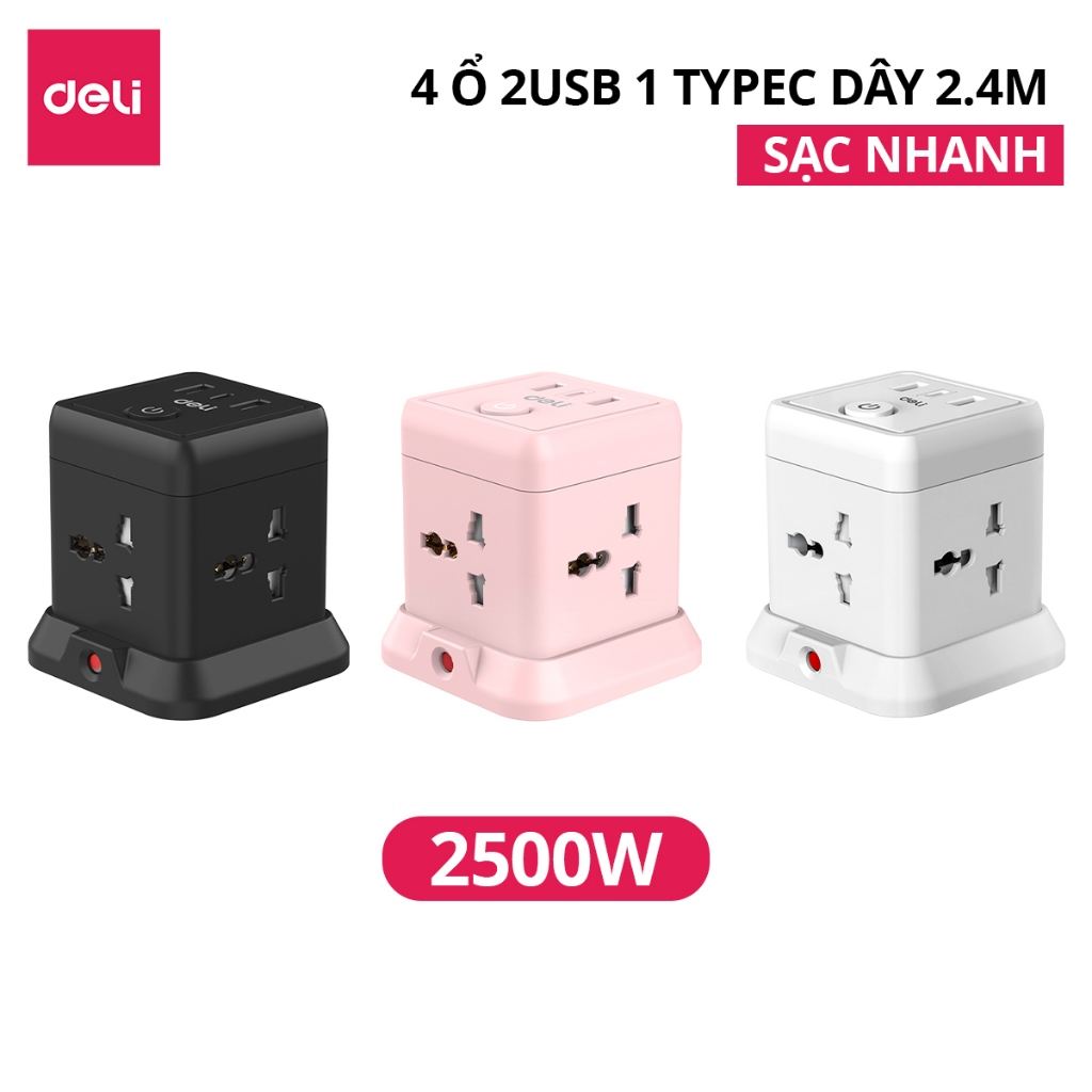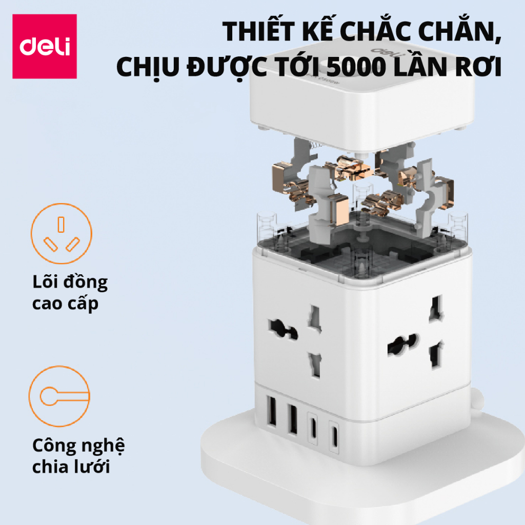[FIREPROOF] DELI USBTypeC 20W Fast Charging Cylindrical/Square Power Socket, Desktop Power Socket with Auto-Stop Fuse 2500W - 4000W