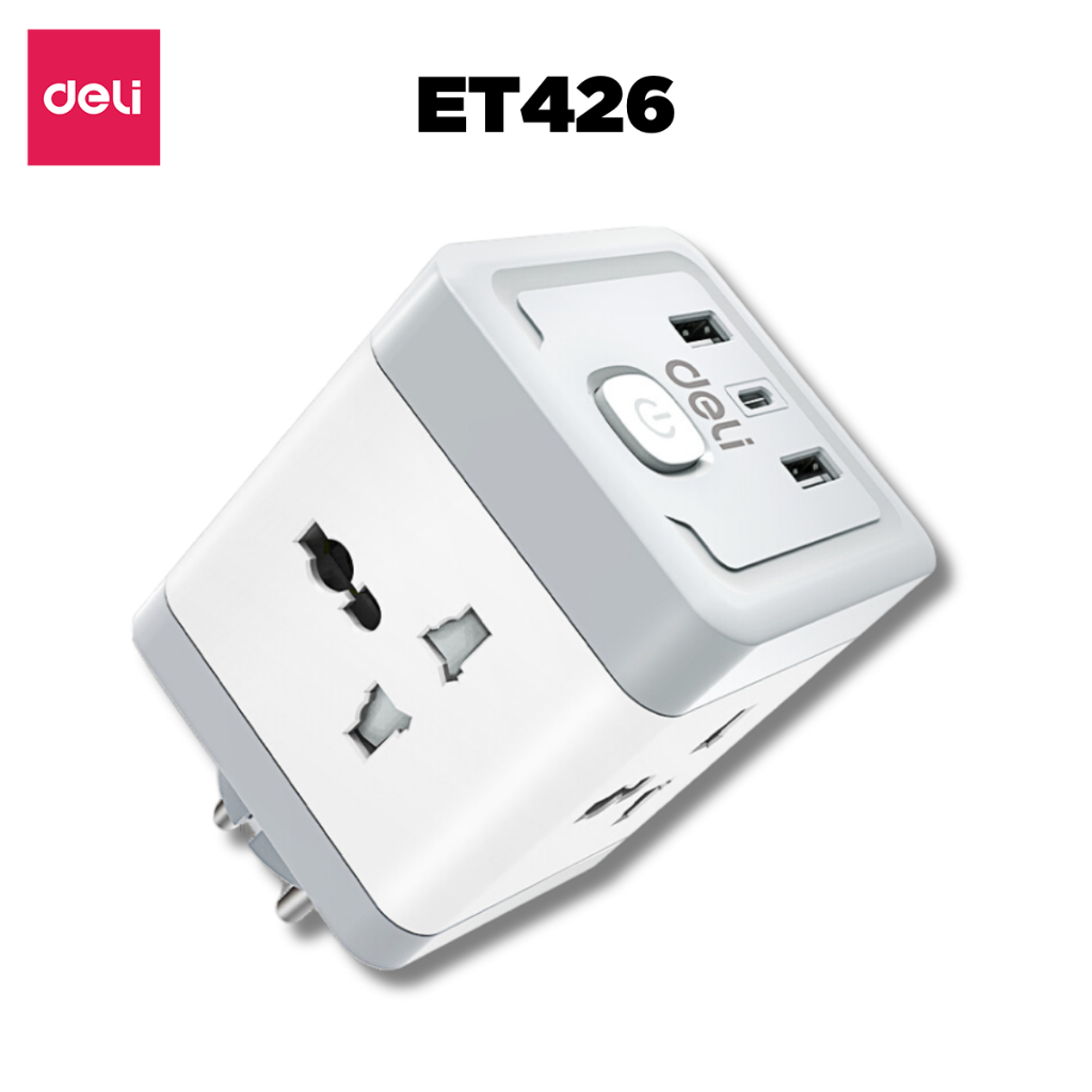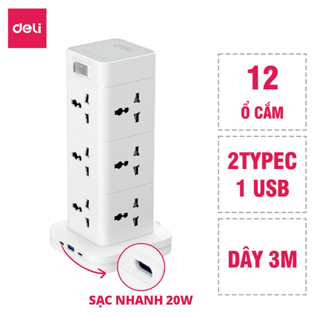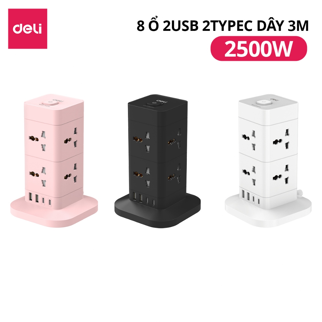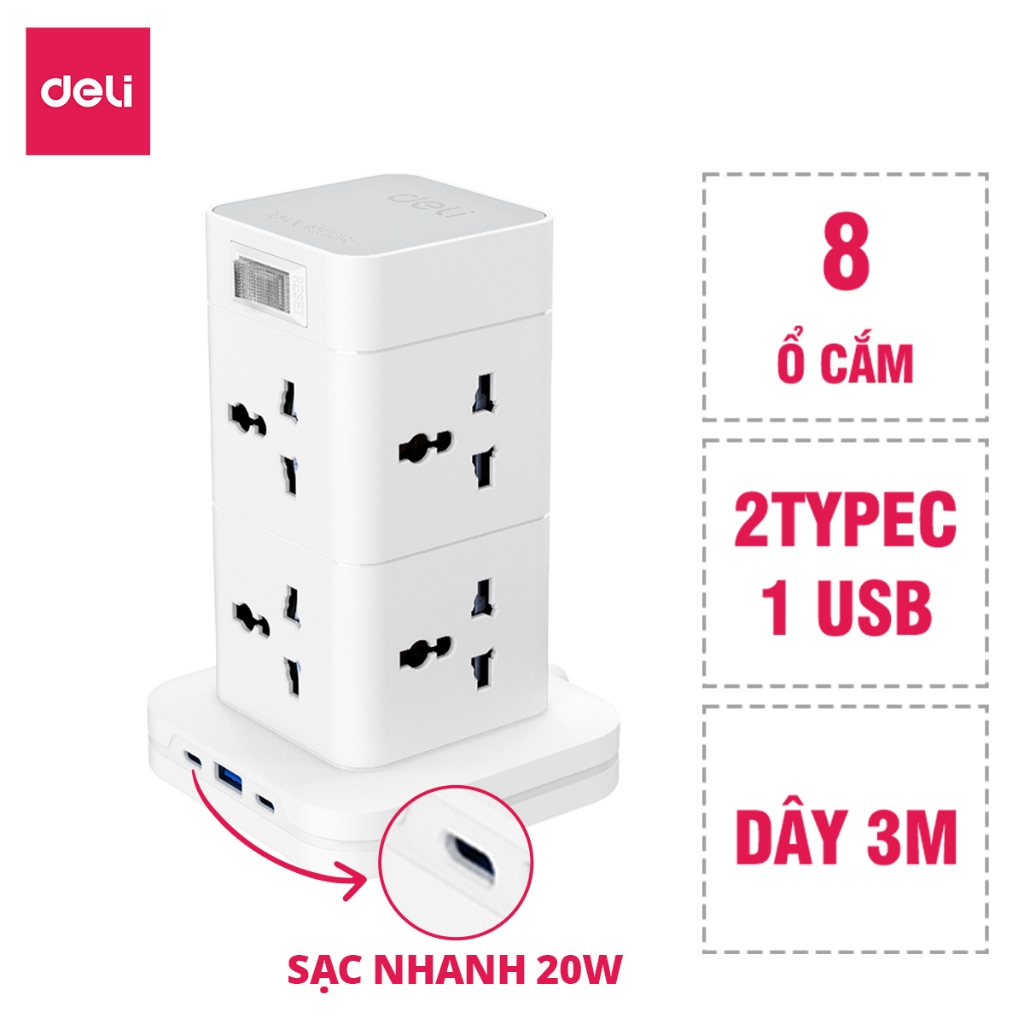 [FIREPROOF] DELI USBTypeC 20W Fast Charging Cylindrical/Square Power Socket, Desktop Power Socket with Auto-Stop Fuse 2500W - 4000W