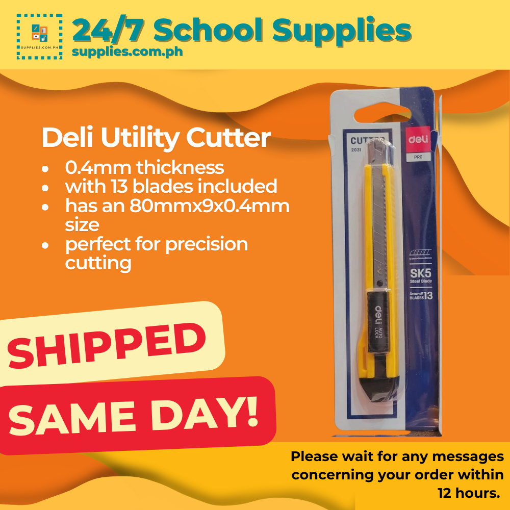 Deli Utility Cutter Thickness 0.4Mm 80Mmx9X0.4Mm 13 Blades 2031