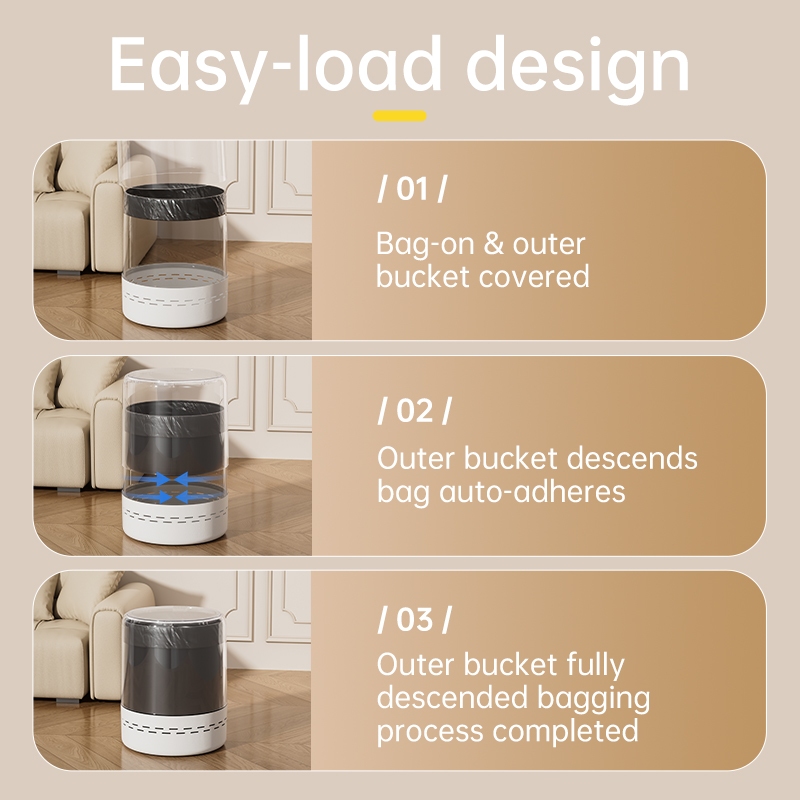 Deli Vusign 12.3L Smart Trash Can Negative Pressure Suction Circular Dustbin Garbage Bins