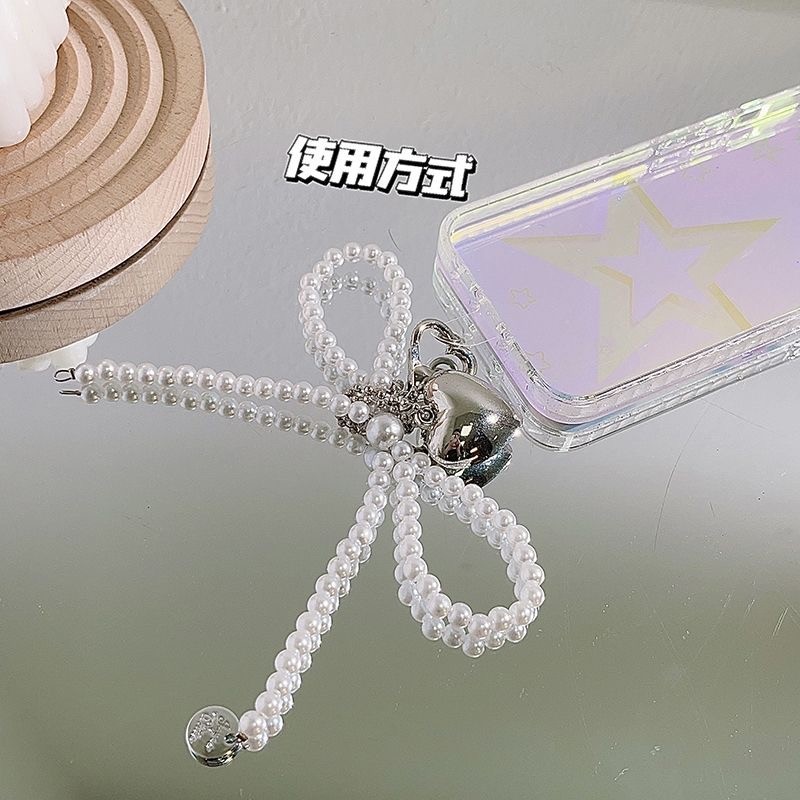 Delicate Beaded Key Chain Handmade Pearl Bow Shaped Pendant Keyring Heart Keychain Ornament Pearl Decoration For Bags Phones