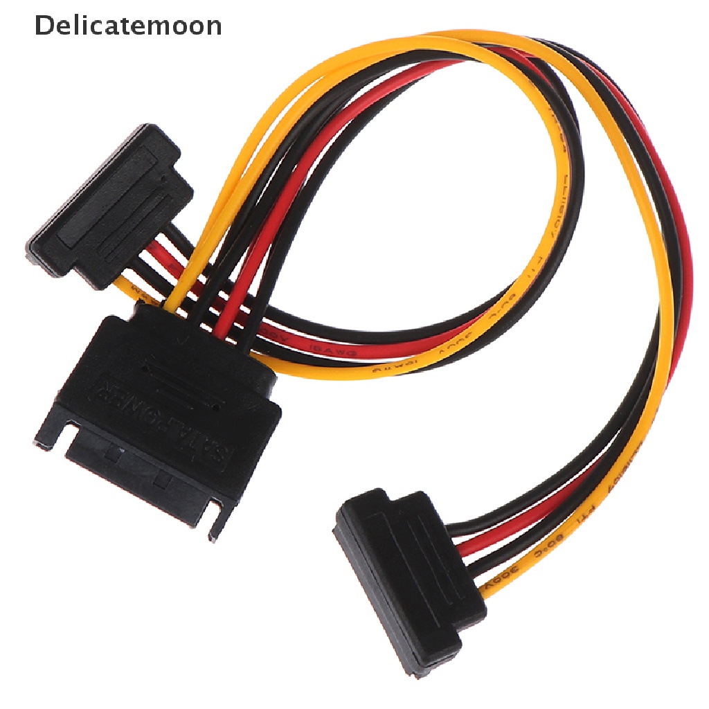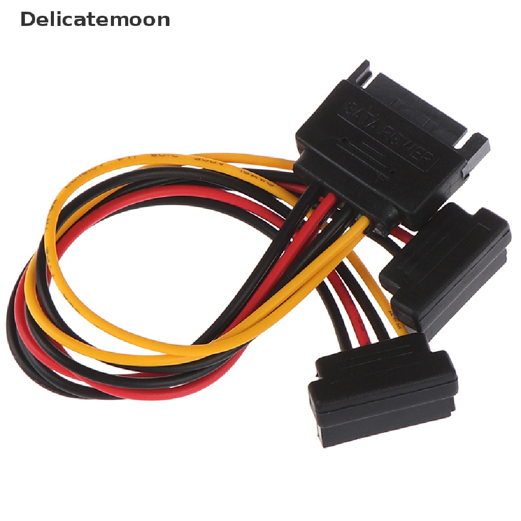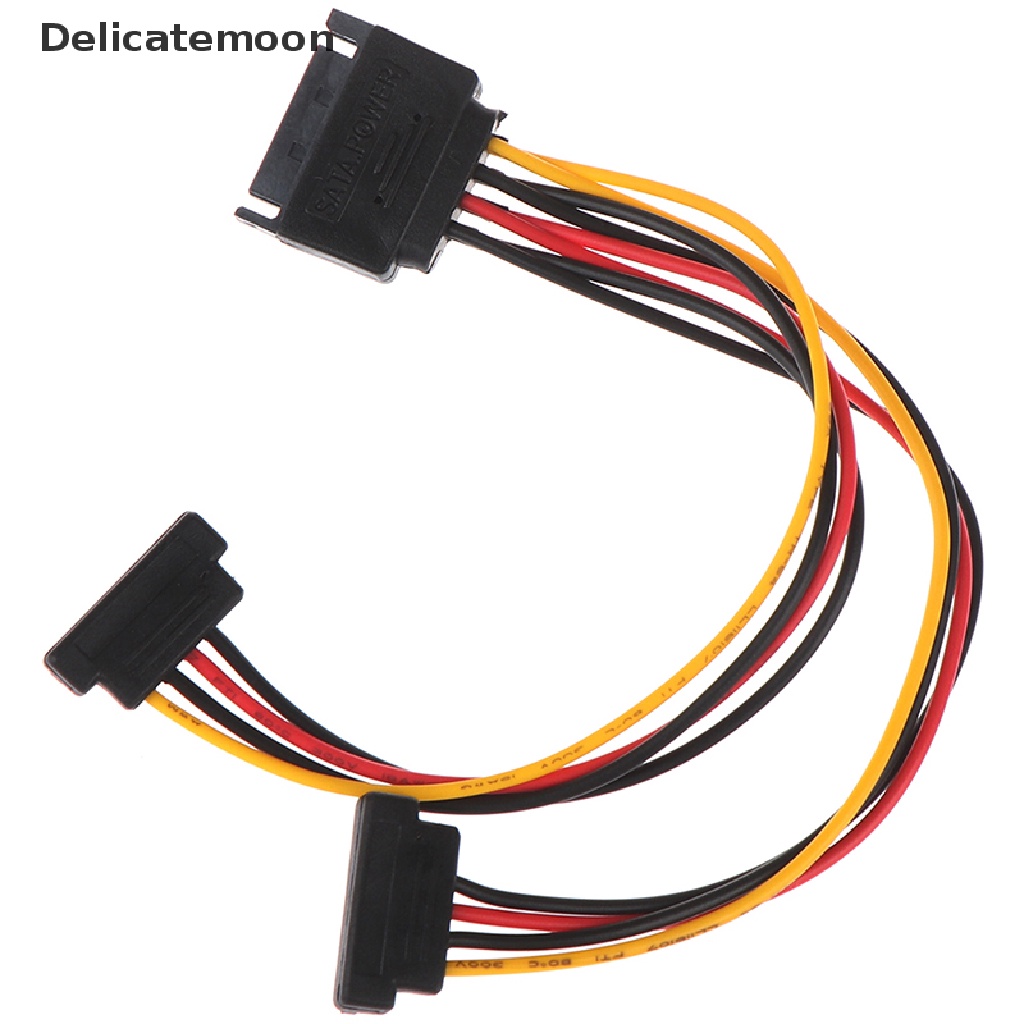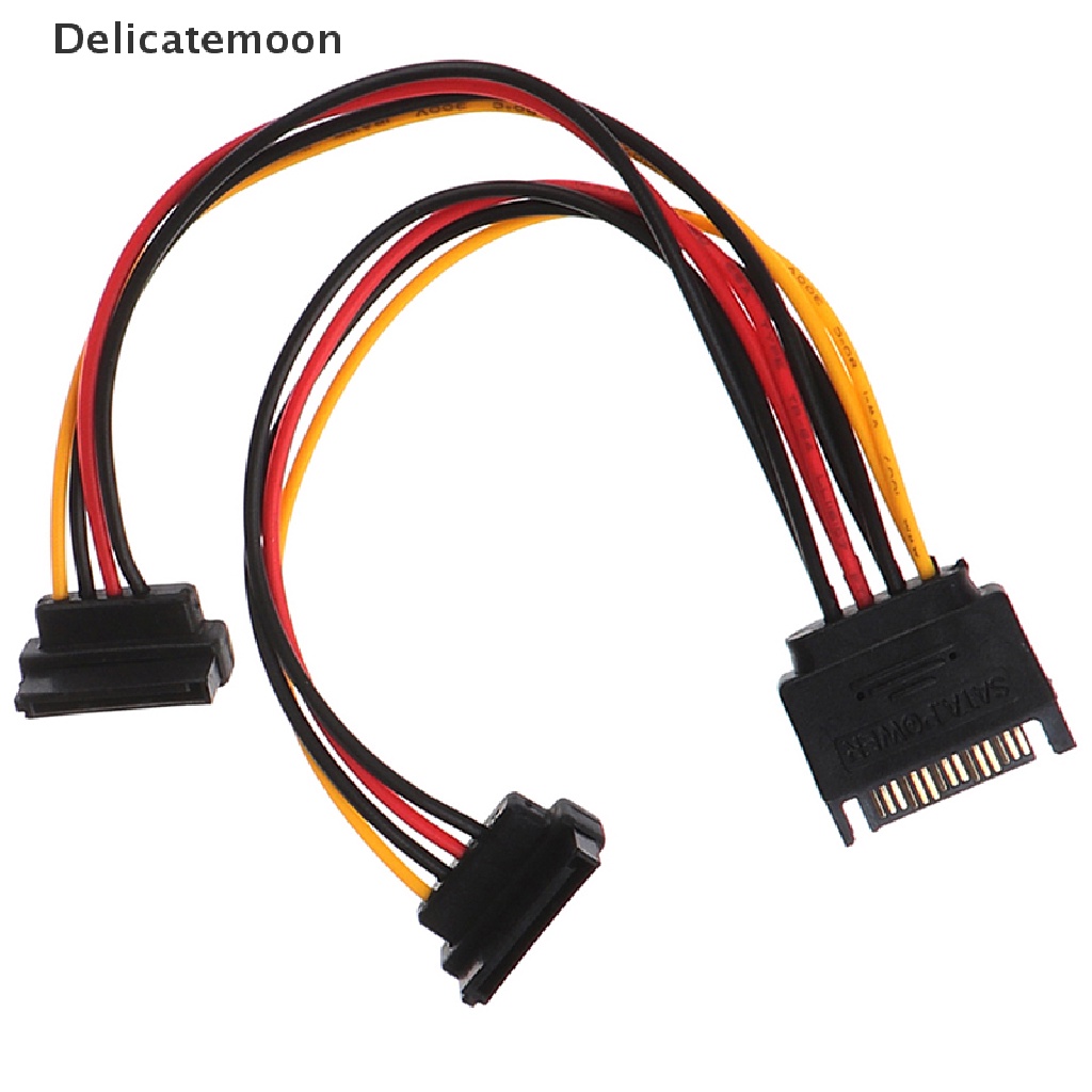 Delicatemoon 90 degree SATA 15-Pin Male to 2 x 15P Female Y Splitter Adapter Power Cable