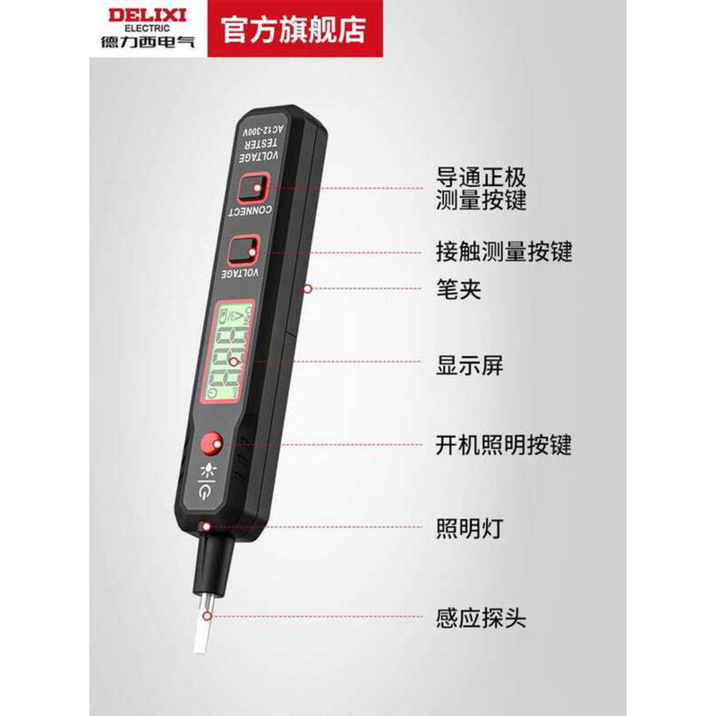 Delixi Electric Pen Intelligent Sensor Voltage Test Continuity Tester Zero Live Wire 12-300V