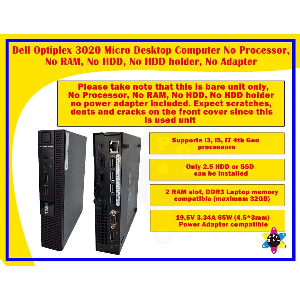 Dell Optiplex 3020 Micro Desktop i3-4160T 3.10Ghz 4GB/8GB RAM 500GB HDD / 120GB SSD /128GB SSD(Used)