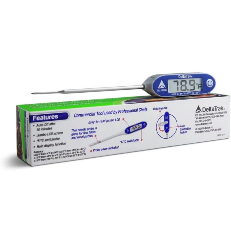 DeltaTrak 11063 FlashCheck Jumbo Display Auto-Cal Needle Probe Thermometer