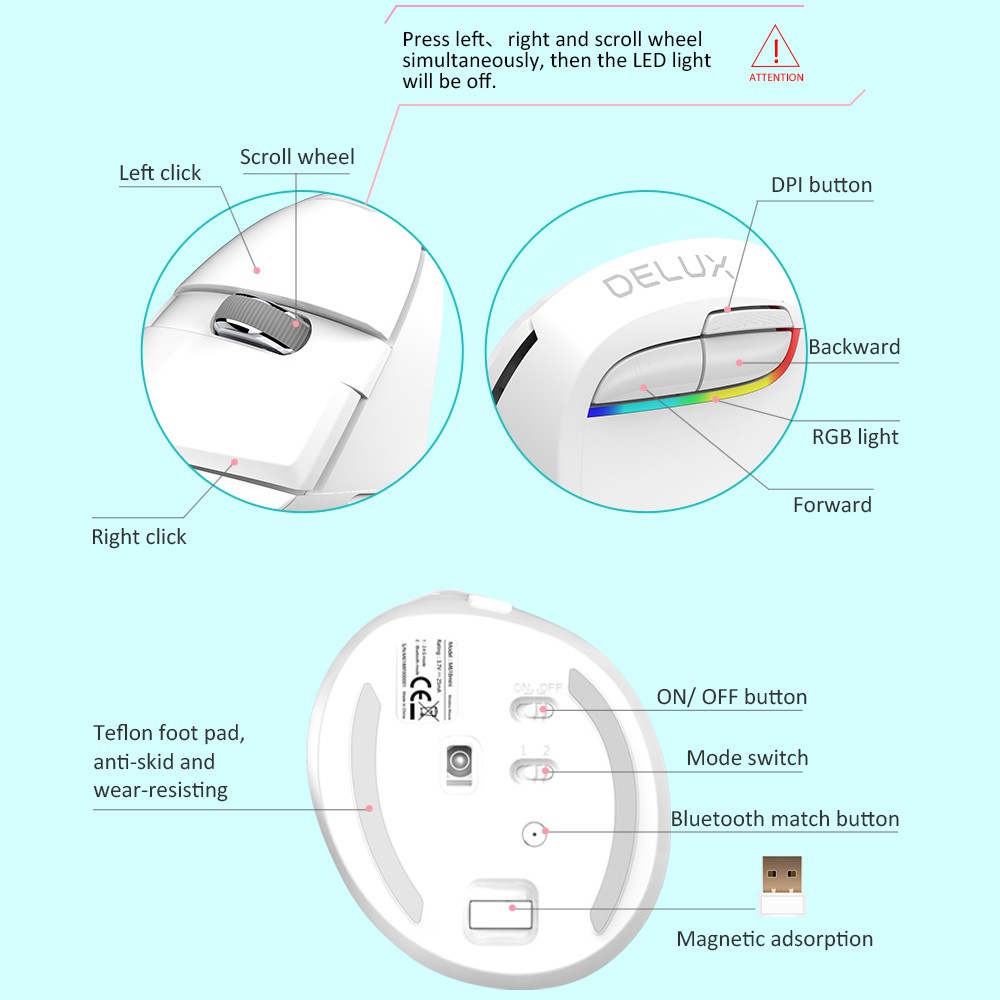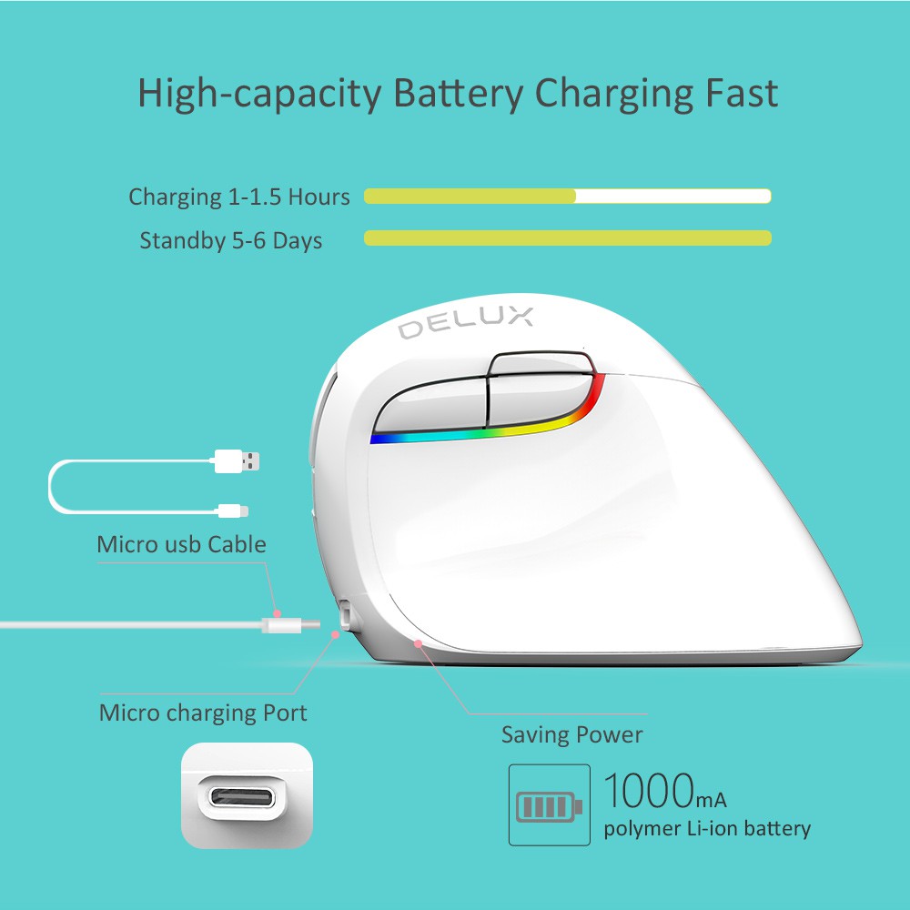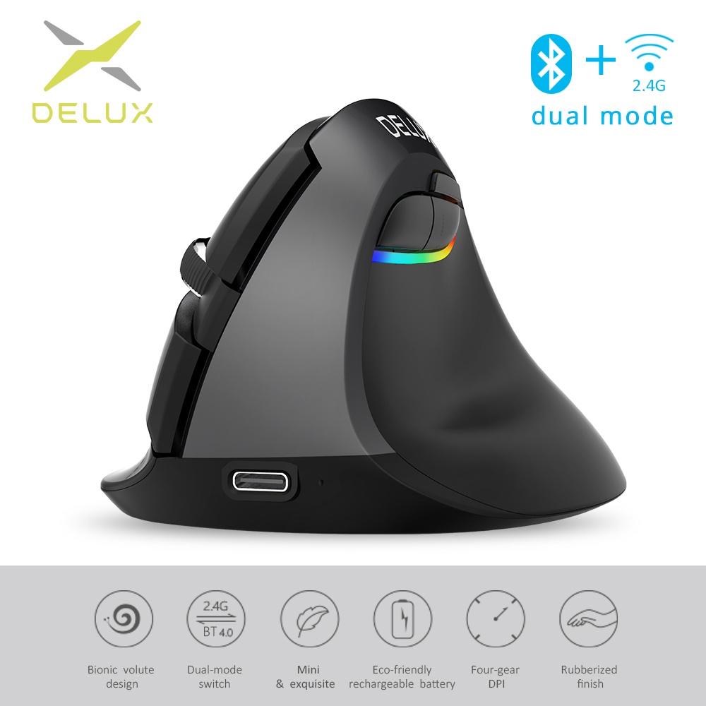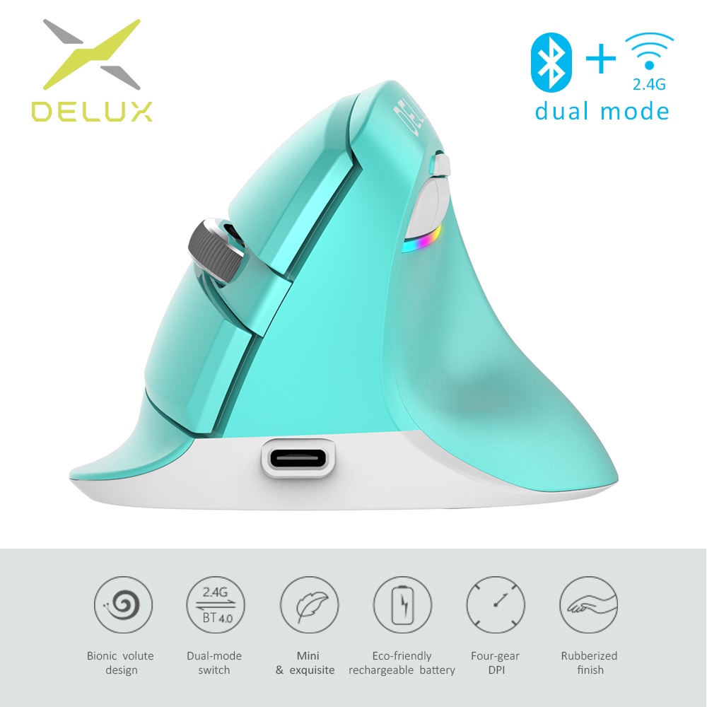 Delux M618 Mini Wireless White Mouse Bluetooth 4.0+2.4Ghz Dual Mode Ergonomic Rechargeable Silent Click Vertical Mice For Pc