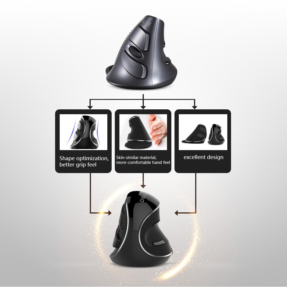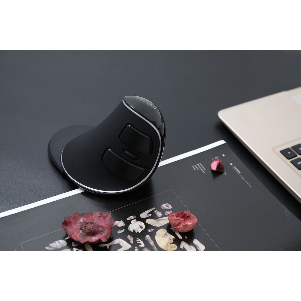 Delux M618 Plus Wireless Ergonomic Vertical Wireless Mouse 1600 DPI 6 Function Buttons Optical Mice with Removable Palm Rest For Computer