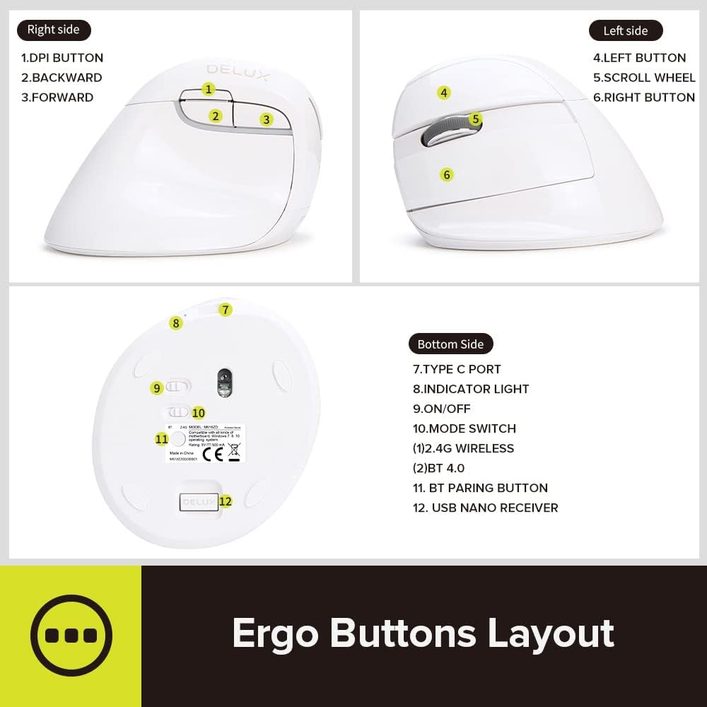 Delux M618ZD Left Hand Dual Wireless Bluetooth Ergonomic Mouse Silent Click