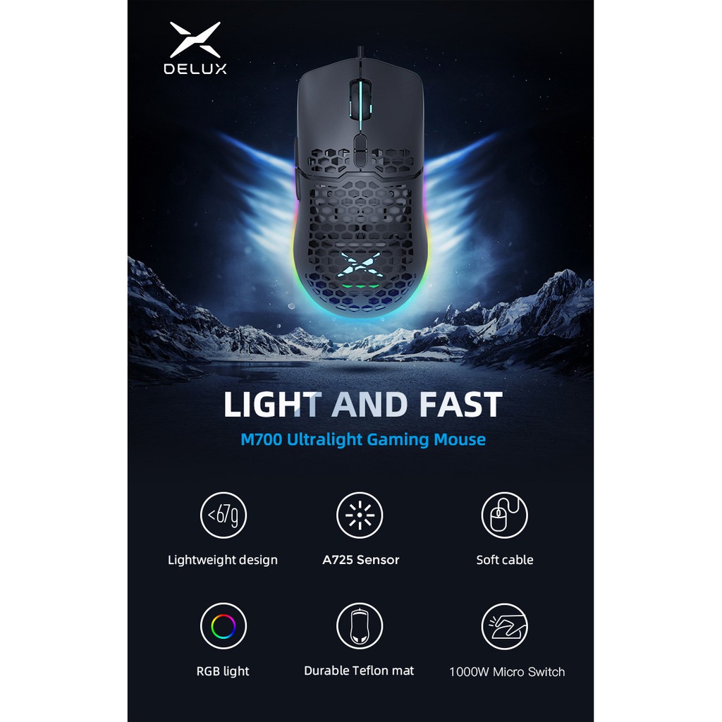 Delux M700 Ultra-Light RGB Wired Gaming Mouse (Upgraded Sensor)