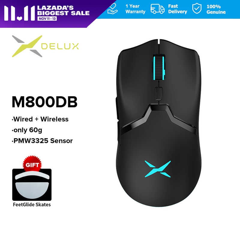 Delux M800 Pmw3325 Wireless Gaming Mouse Para Sa PC Laptop Rechargeable Mouse Na May RGB Light M800