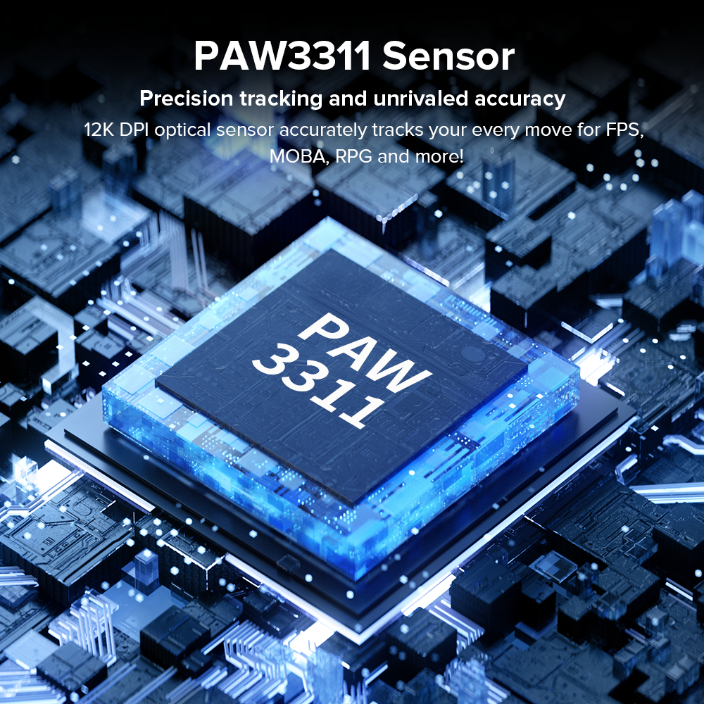 Delux M900 PAW3311 Gaming Mouse DPI MAX 12000 Wired 2.4G Wireless Rechargeable with RGB Charging Dock 63g Ultra-light weight Asymmetrical Ergonomic Design for PC/Laptop/Windows