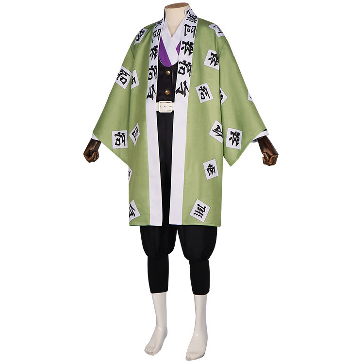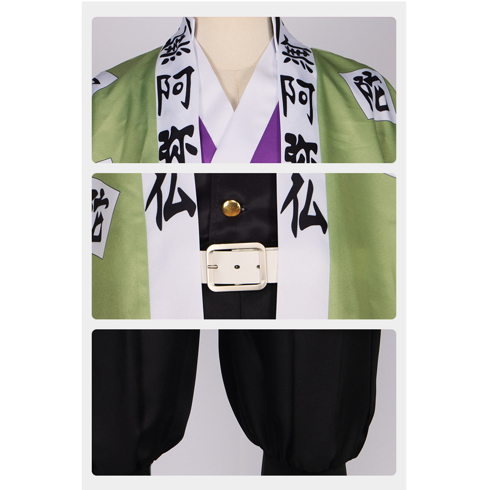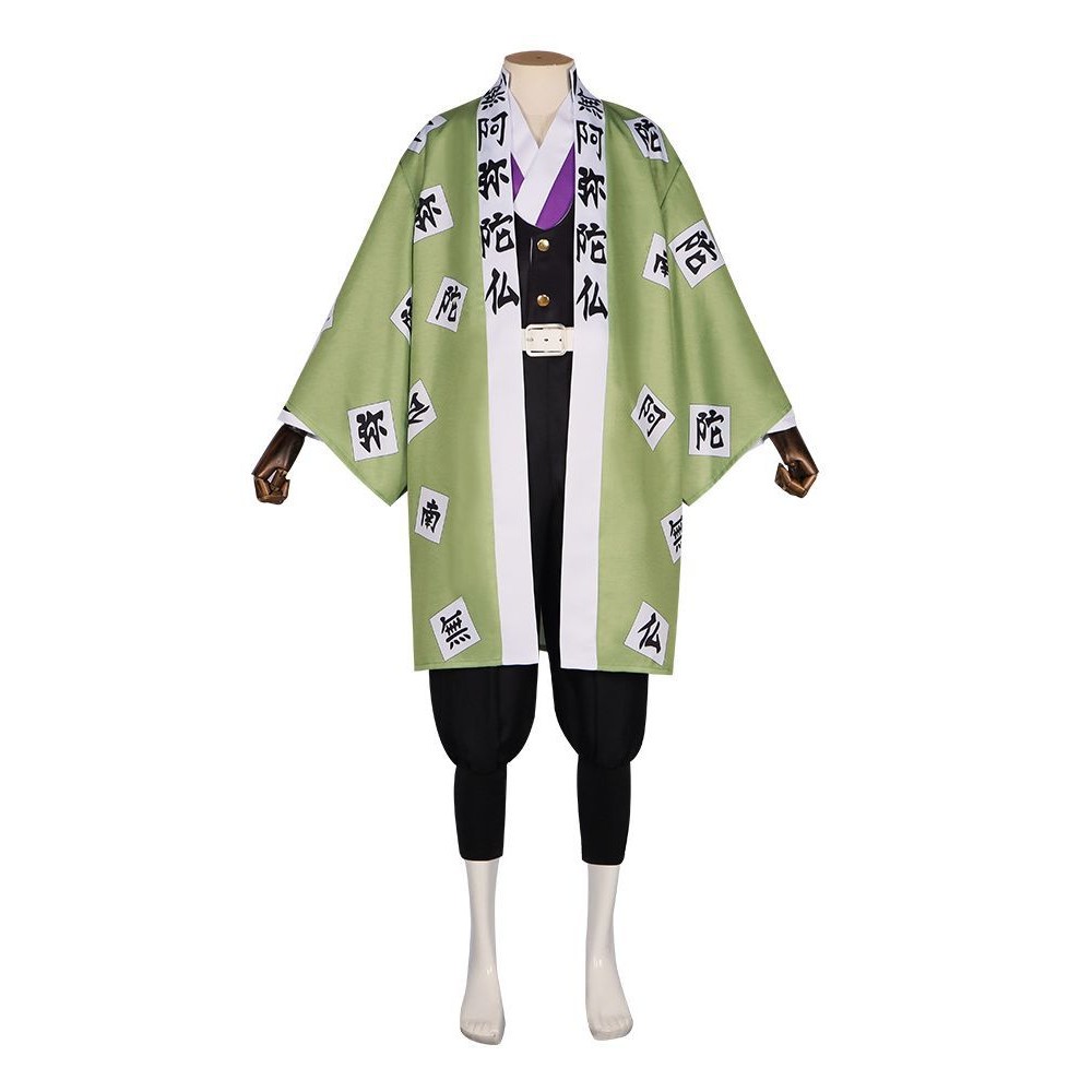 Demon Slayer Anime Cosplay Costume: Himejima Gyomei's Kimono Outfit With Black Uniform and Haori