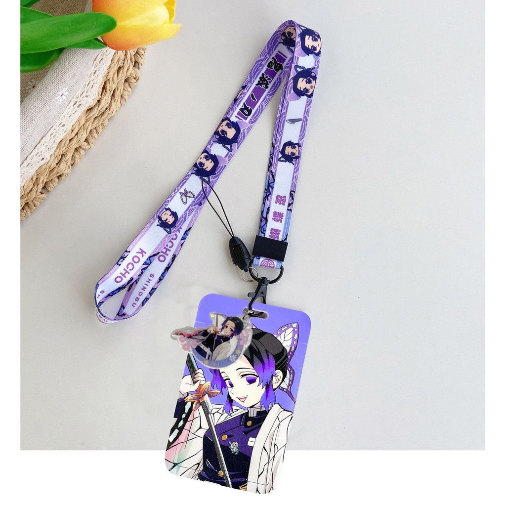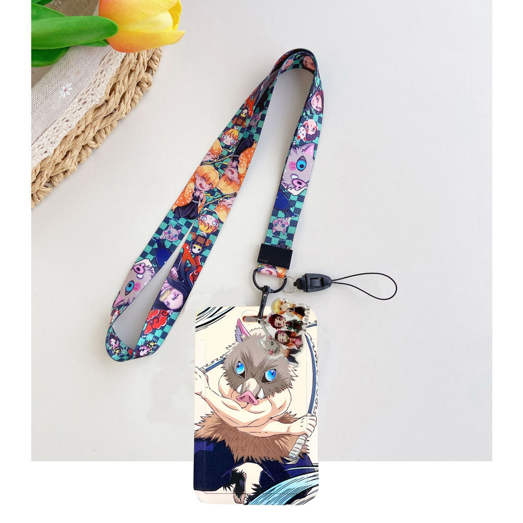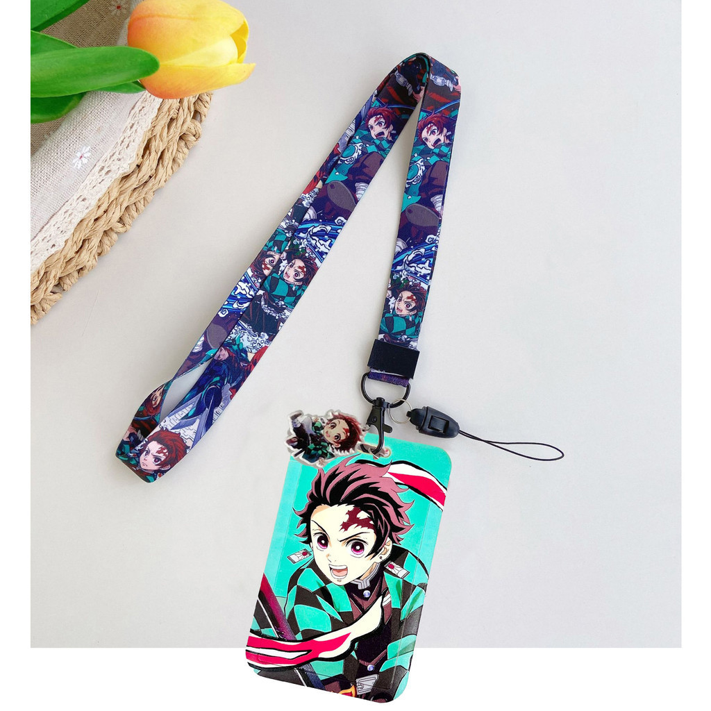 Demon Slayer Card Holder Long Lanyard with Pendant Access Card Case ID Badge Holders Student Card Protective Cover Cute Name Tag Holders