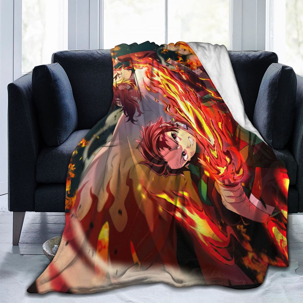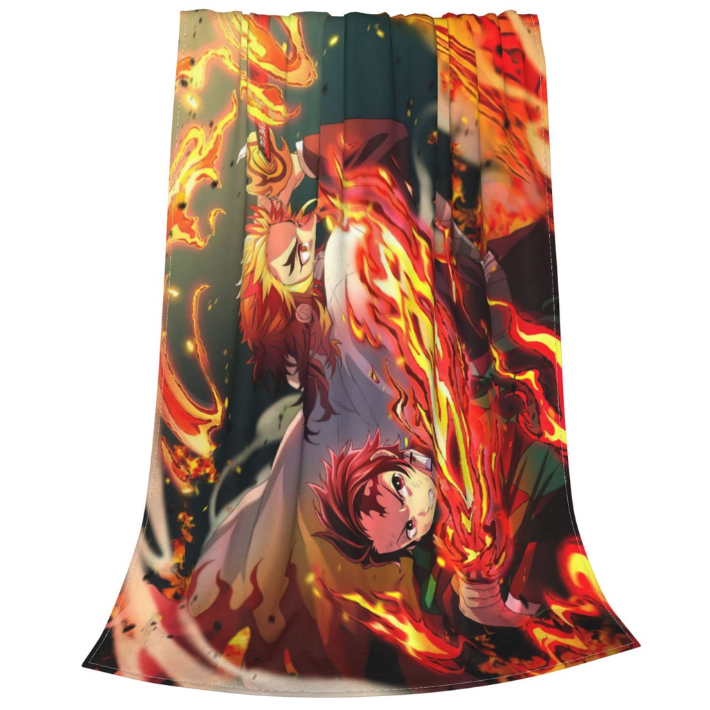 Demon Slayer Flannel Printed Sleeping Blanket Pattern Design Cotton Bed Blanket Kumot Double Size Tanjirou Nezuko