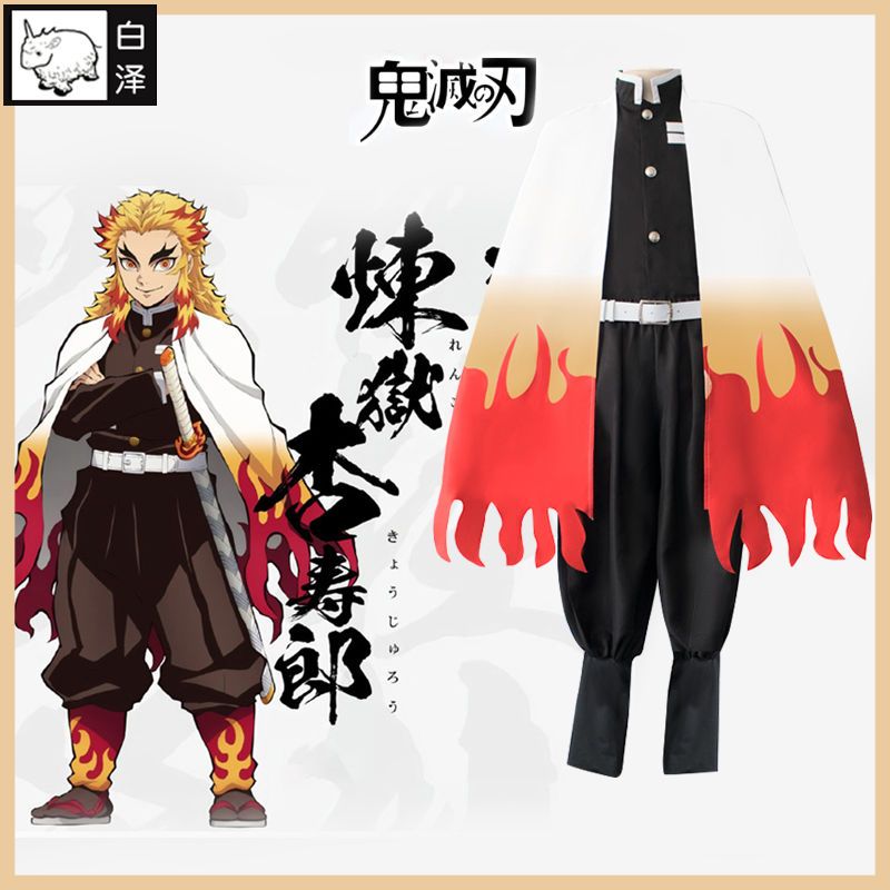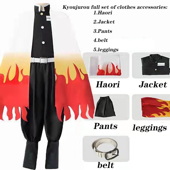 Demon Slayer:Kimetsu No Yaiba Rengoku Kyoujurou Cosplay Costume Kimono Robe Suit