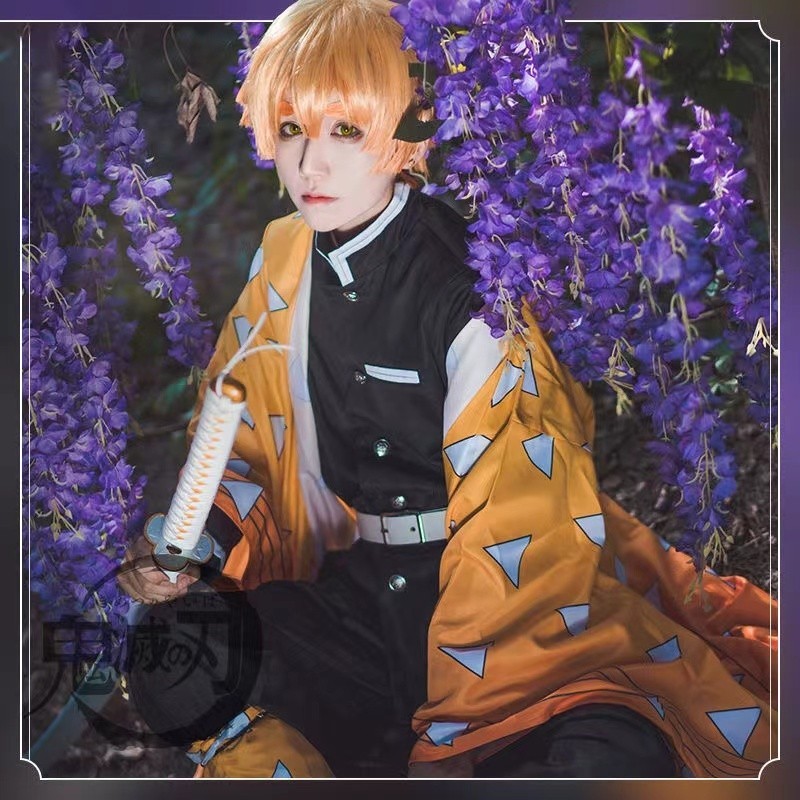 Demon Slayer Kimetsu Zenitsu Cosplay Costume Kimono Uniform Halloween For Christmas and Halloween