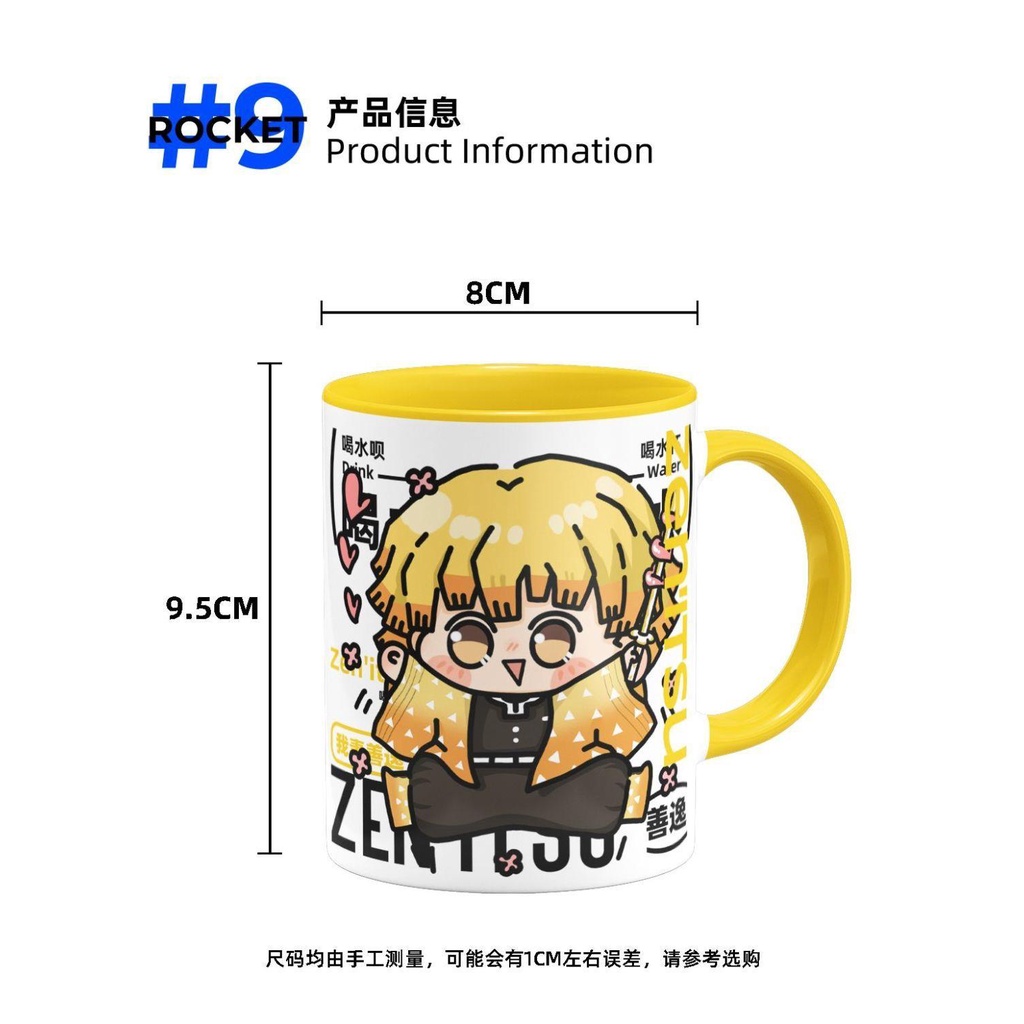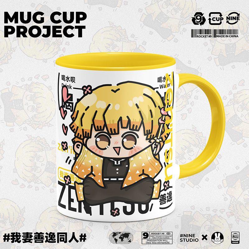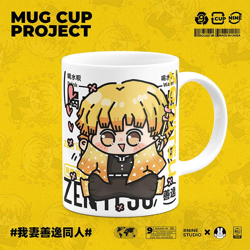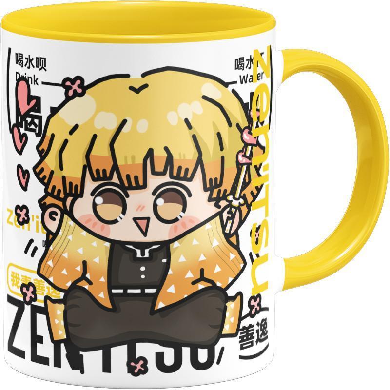 Demon Slayer: Kimetsu no Yaiba Blade of Demon Destruction Zenitsu Agatsuma Merchandise Men Women Cute Ceramic Water Cup Student Gift Mug With Lid Spoon