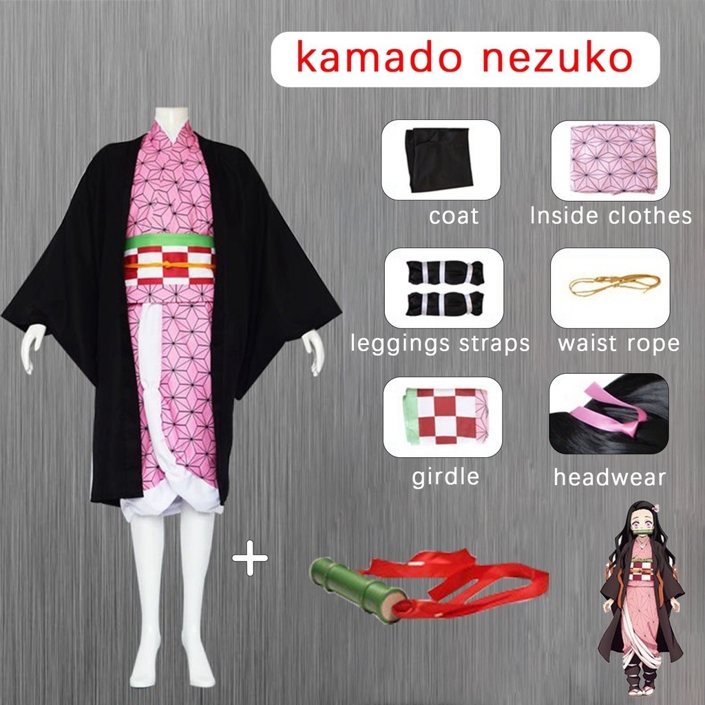 Demon Slayer Nezuko Cosplay Anime Nezuko Wig Adult Kids Halloween Costs For Christmas