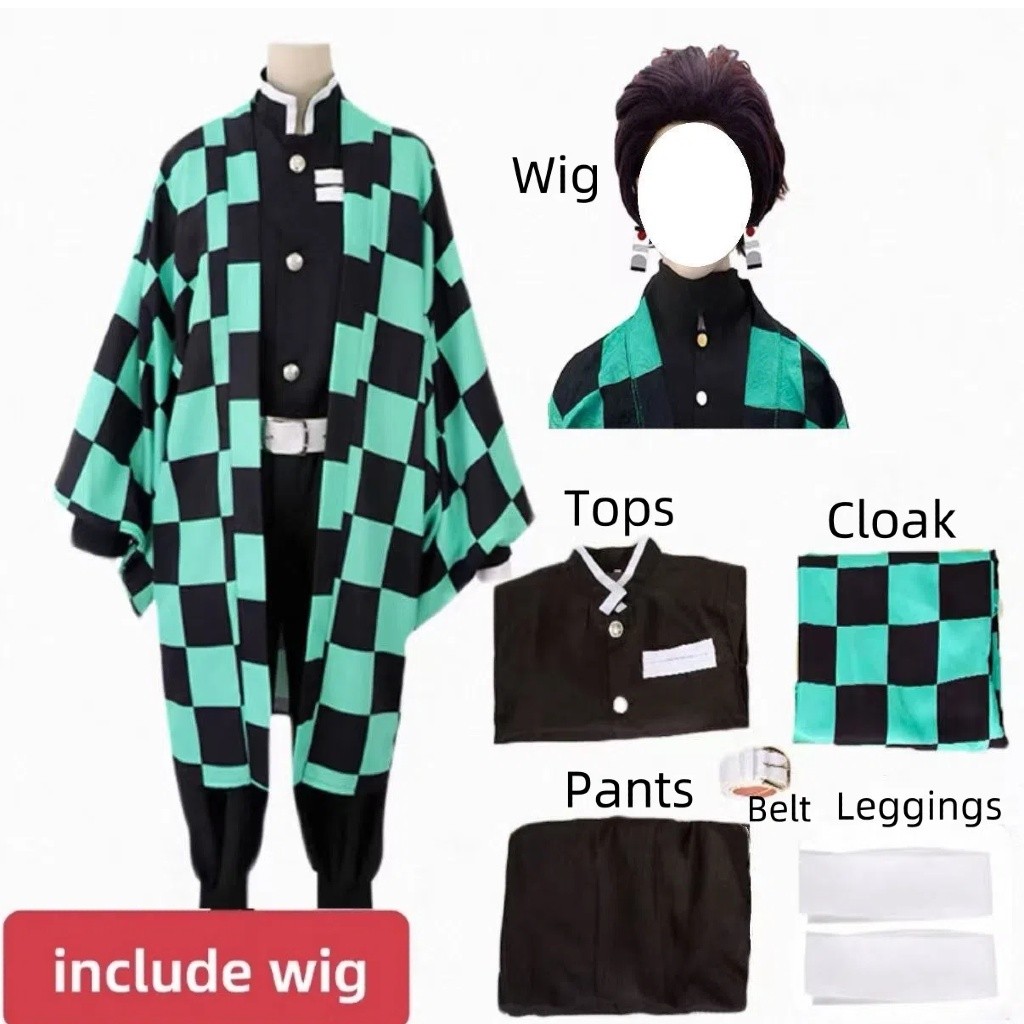 Demon Slayer No Yaiba Kimetsu Tanjiro Cosplay Costume for Men Anime Role Play Uniform Full Set