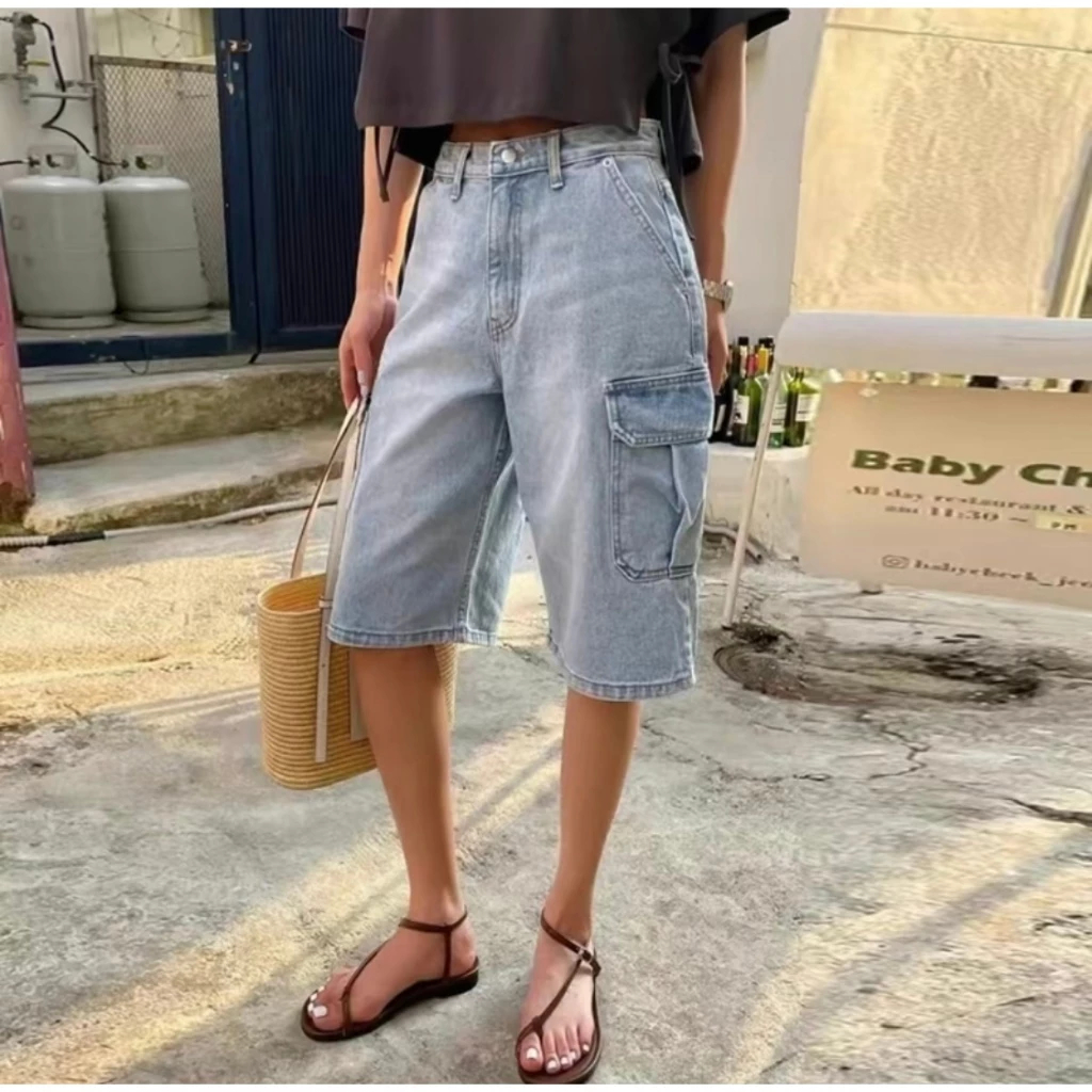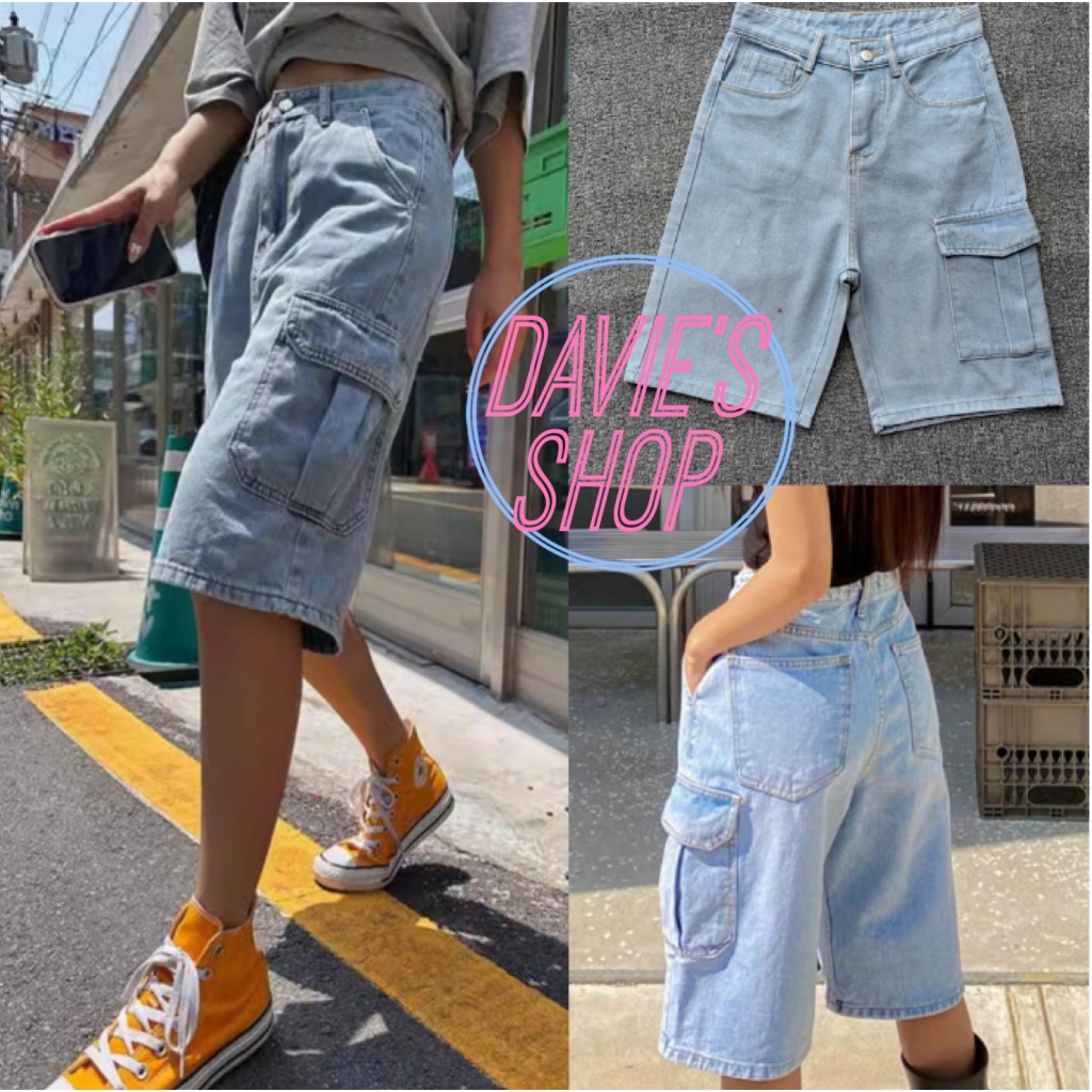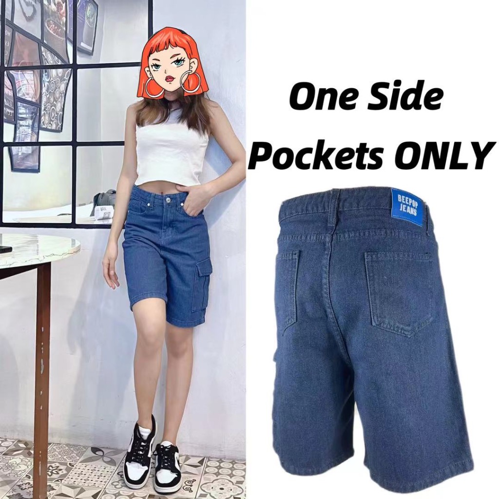 Denim Cargo Shorts ONE SIDE POCKETS Maong Shorts