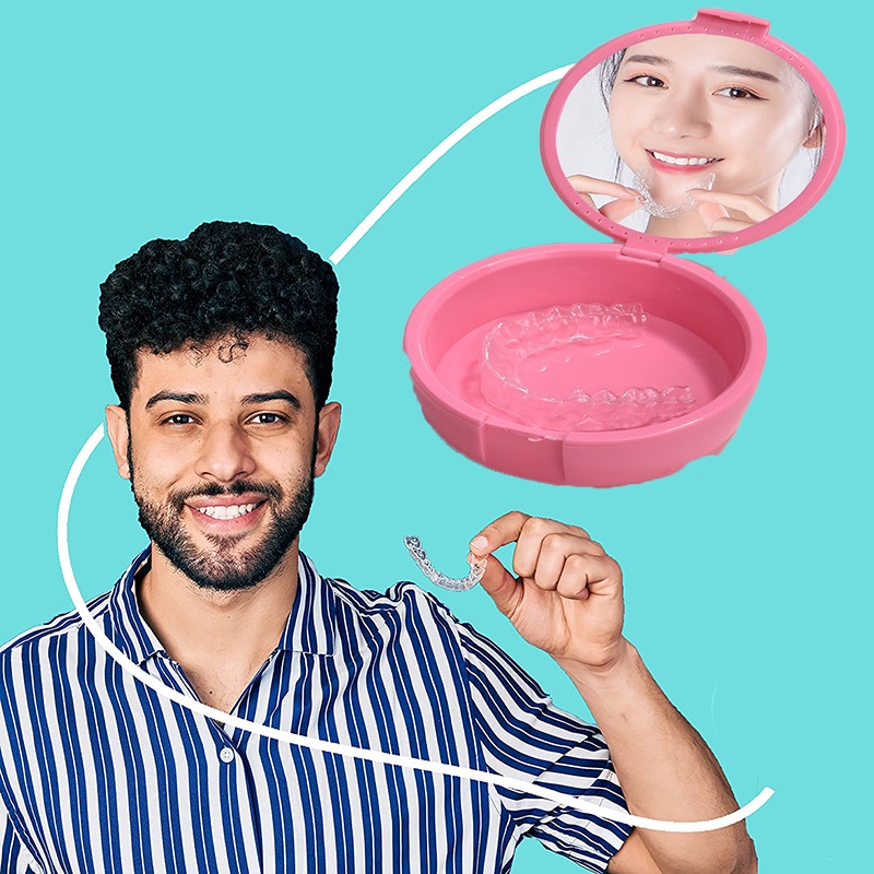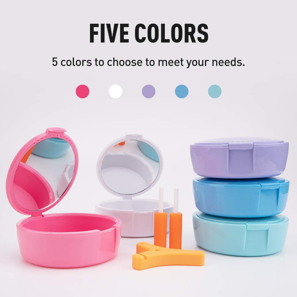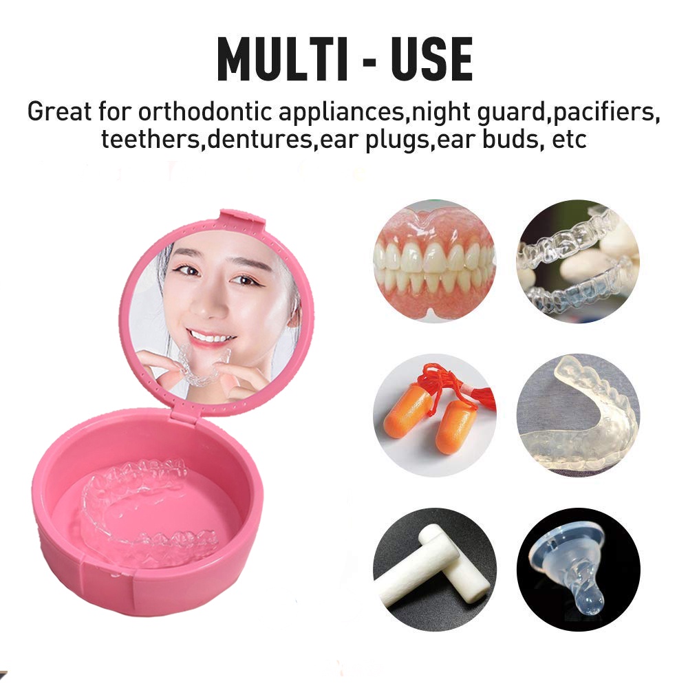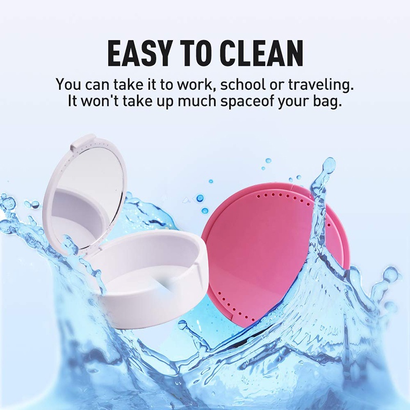 Denture Case With Mirror and Ventilation Holes, Retainers Container Plastic Denture Box