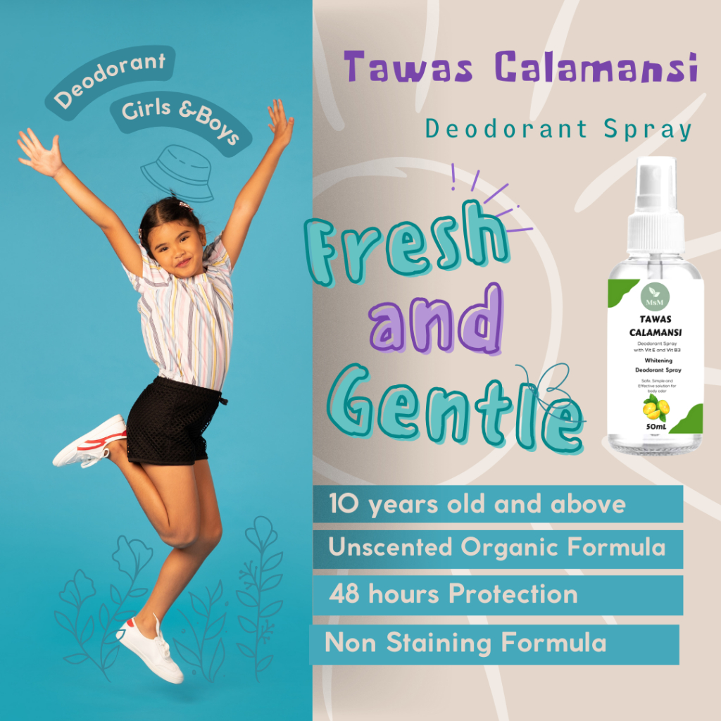 Deodorant for Kids 10years old Girls & Boys| Natural Tawas Calamansi Underarm Deo Spray for Teens