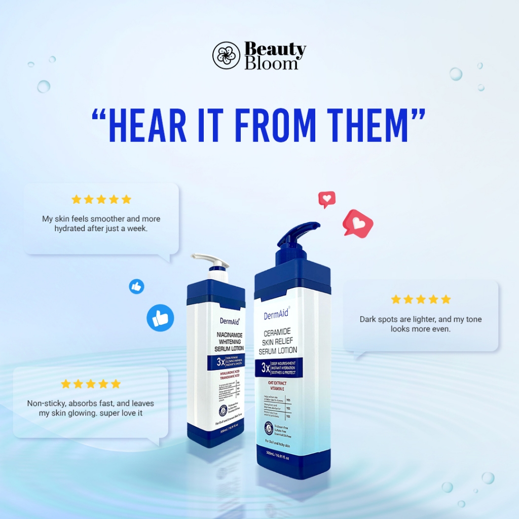 DermAid Ceramide Skin Relief Body Lotion | Niacinamide Whitening Body Lotion 500ml