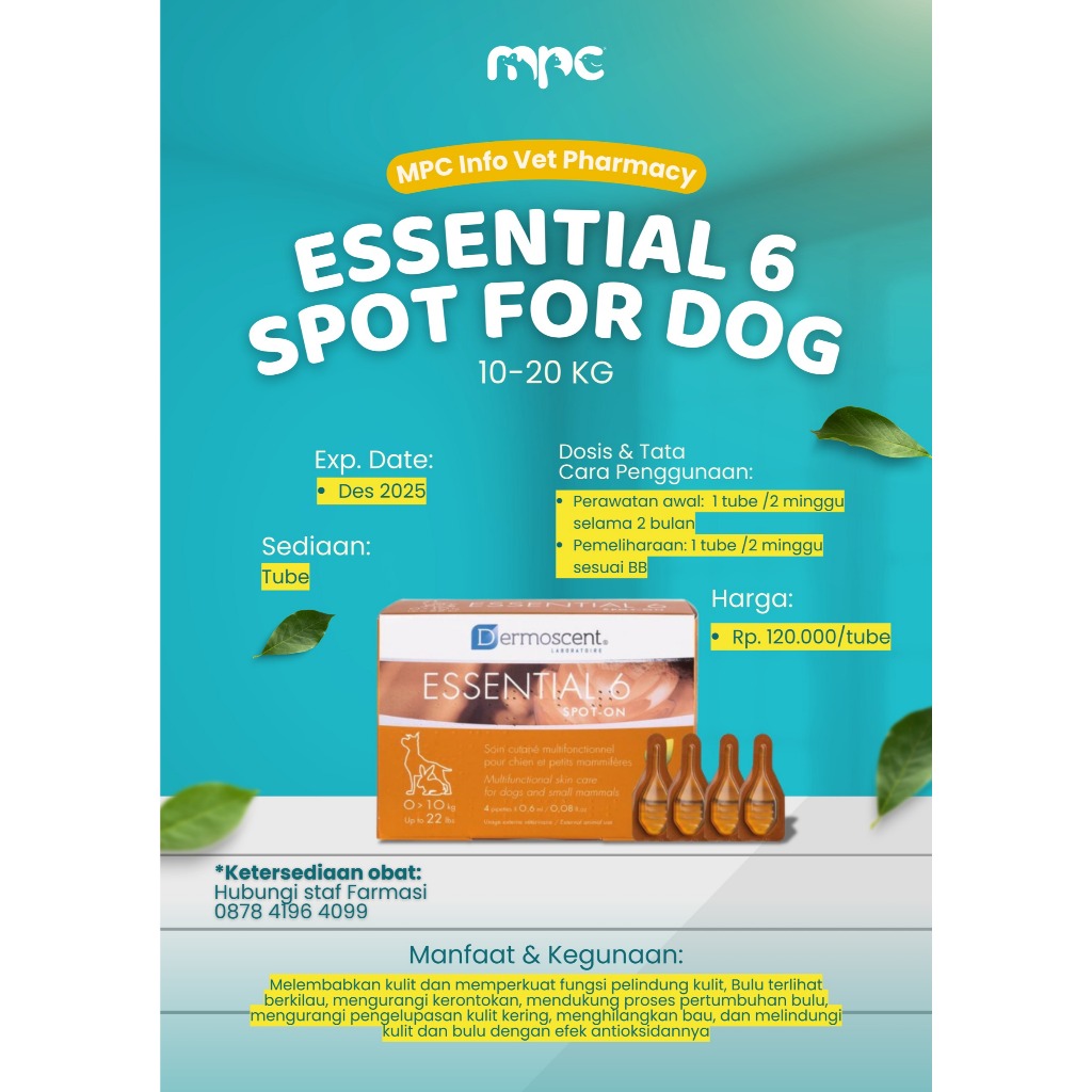 Dermoscent Essential 6 Spot On For Dog (10-20KG) Vitamin Skin & Fur Drops Dog (1 Pipette)