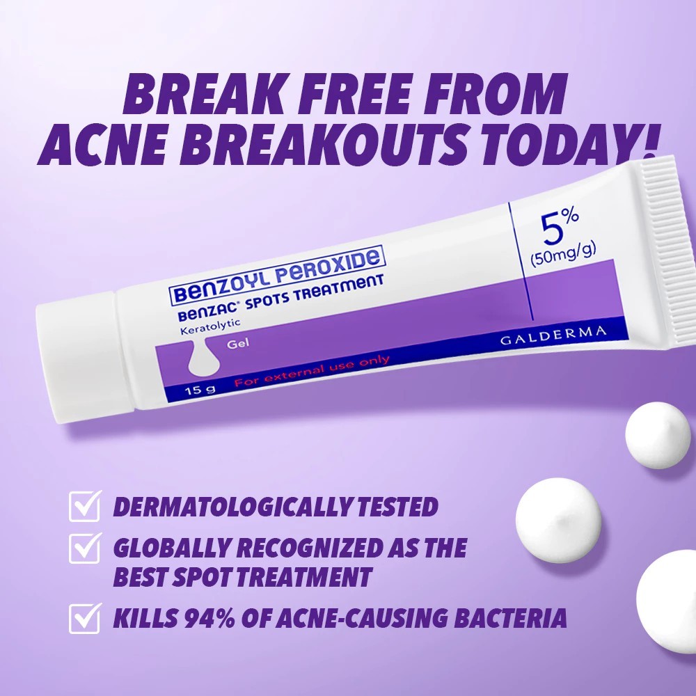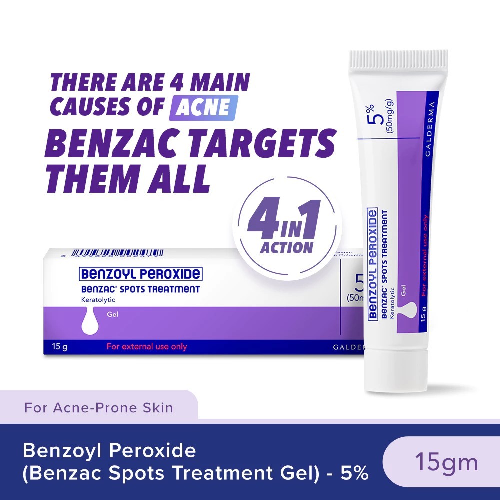BENZAC 5% Benzoyl Peroxide Gel 15g Anti-Acne Spot Treatment Fast Pimple Remover for Clearer Skin