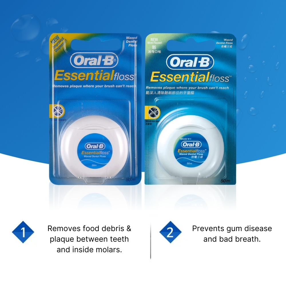 Oral-B Essential Dental Floss 50m ×6 | Basic & Mint | Gentle Daily Oral Care Set