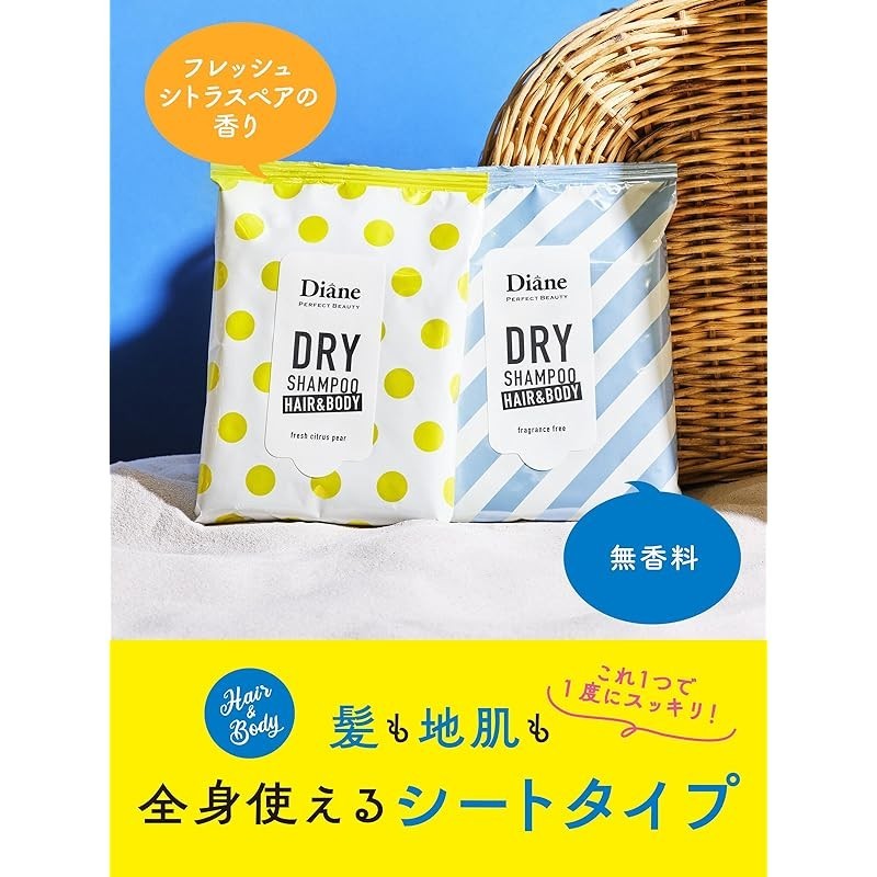 Diane Dry Shampoo Sheets [Fresh Citrus Pear Scent/Fragrance Free] 12 Sheets
